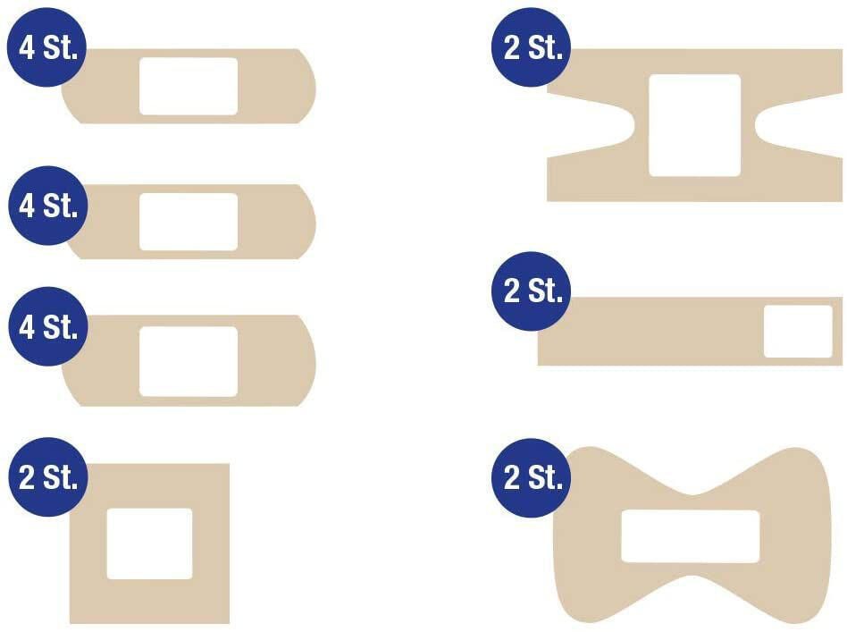 In der Box sind insgesamt 20 Strips enthalten, die eine Vielzahl von Wundversorgungslösungen bieten. Dazu gehören 8 Kinderpflasterstrips (1,9 x 7,2 cm), 4 Strips (2,5 x 7,2 cm), 2 Quadratpflaster (3,8 x 3,8 cm), 2 Fingergelenkverbände (3,8 x 7,5 cm), 2 Fingerverbände (12,0 x 2,0 cm) und 2 Fingerkuppenverbände (4,5 x 6,5 cm). Diese Vielfalt stellt sicher, dass du für jede Verletzung das passende Pflaster zur Hand hast.