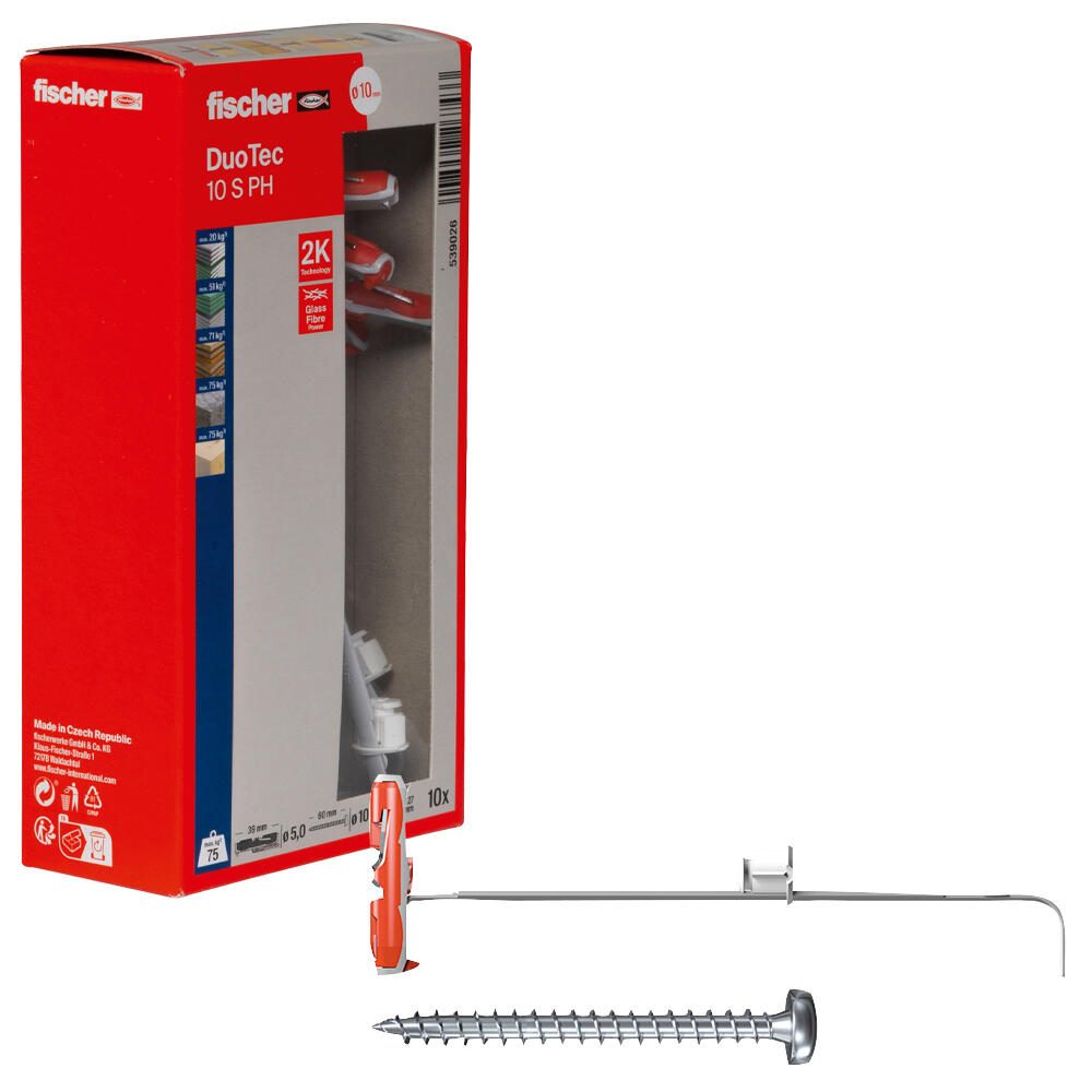 fischer DuoTec 10 S PH Dübel mit Schrauben 10 x 50 mm, 10 Stück