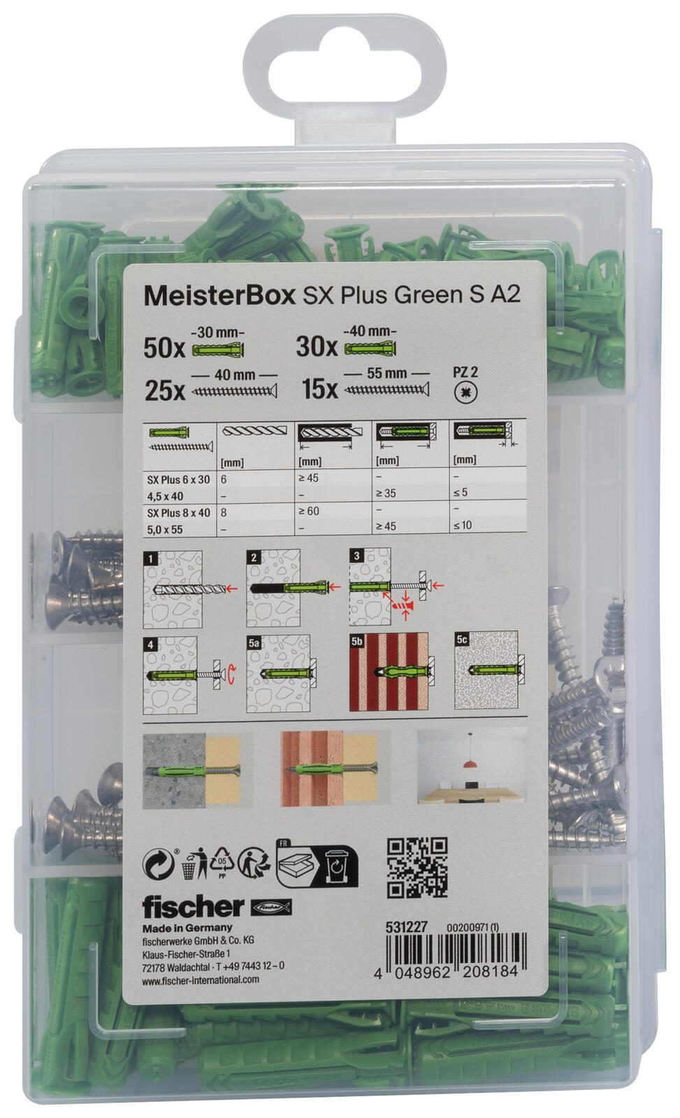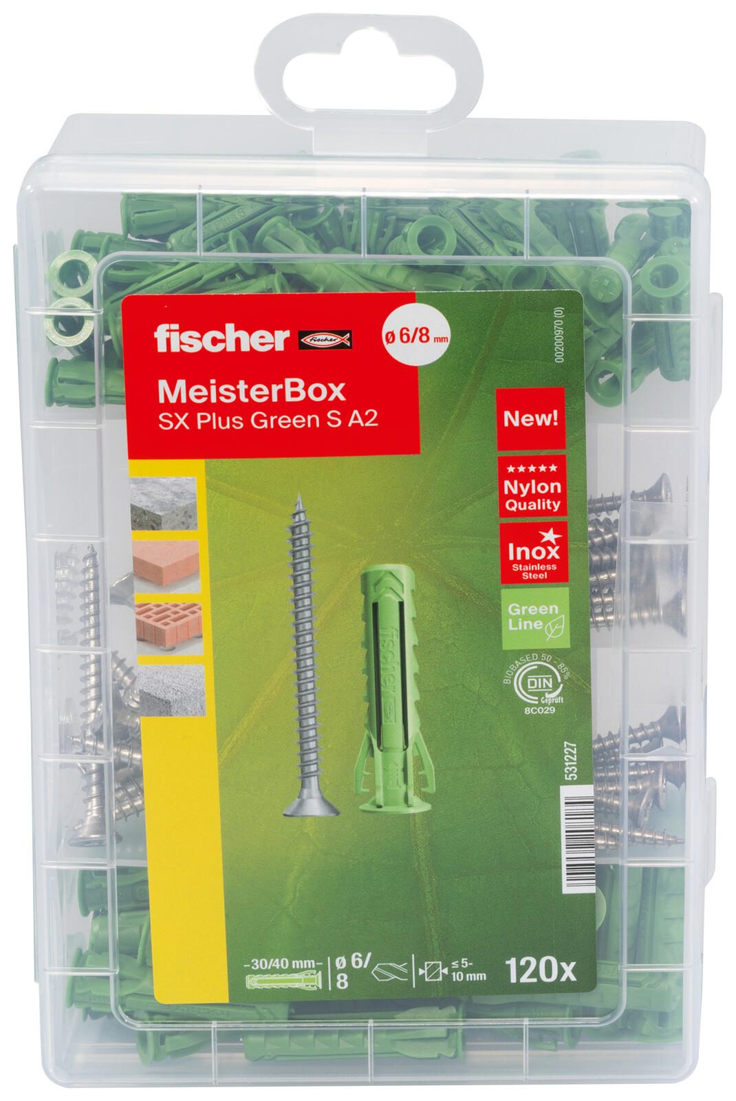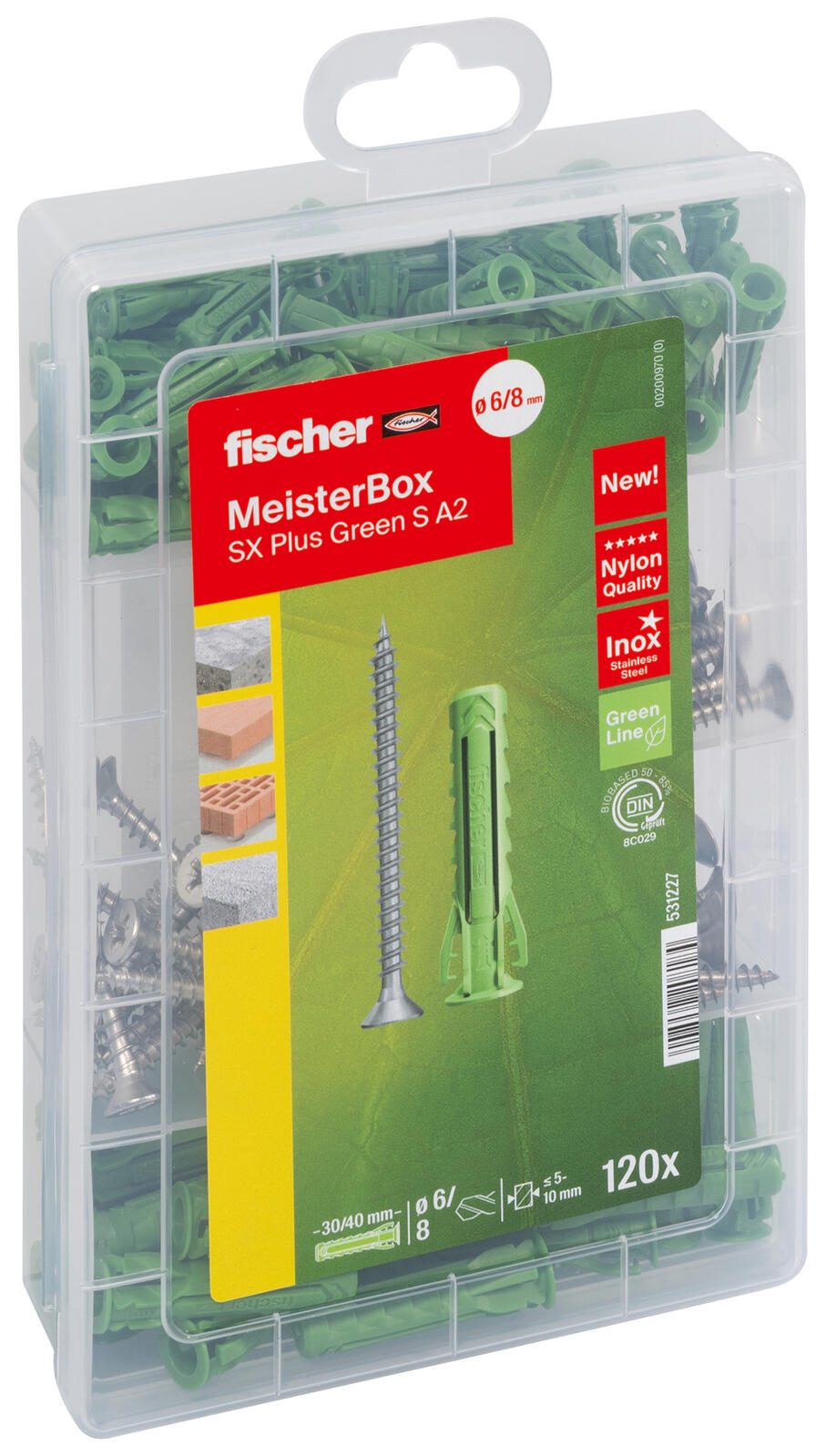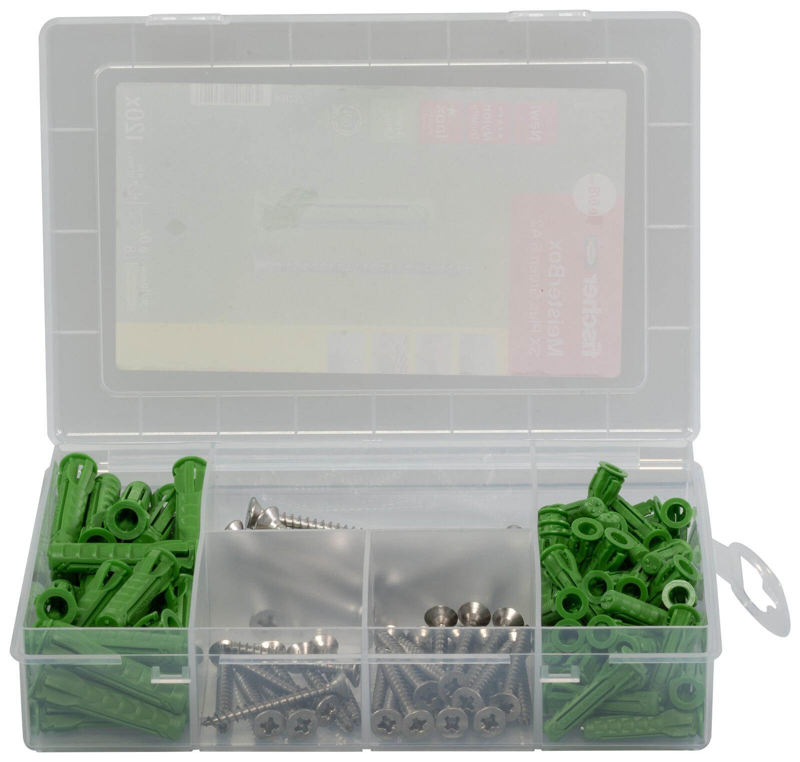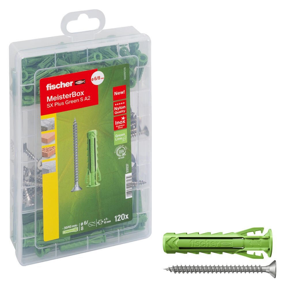 fischer Meister-Box - SX Plus Green S A2 Dübel- und Schrauben-Sortiment 120 Stück