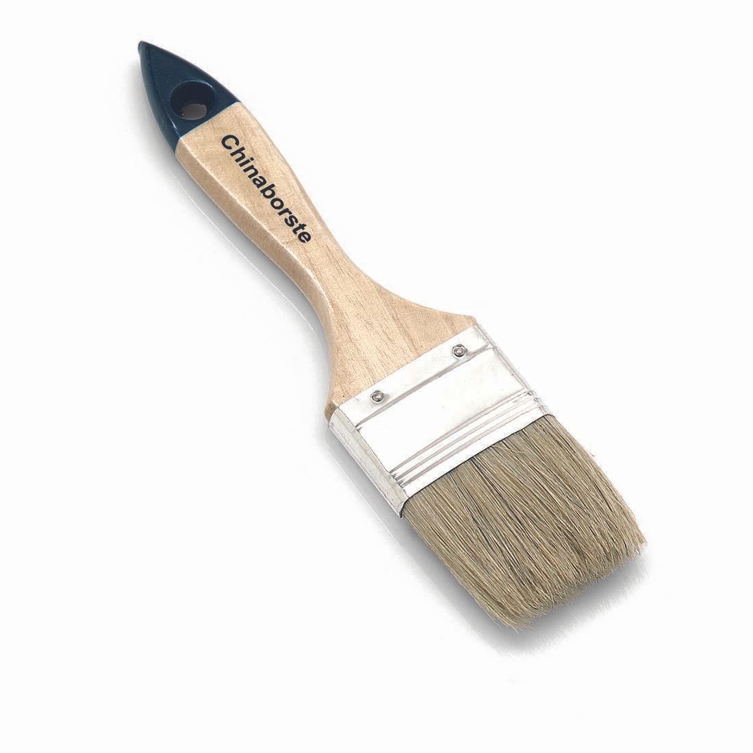 Der Pinsel verfügt über eine helle Borstenmischung, die perfekt für Wandfarbe, Lasur und Lack geeignet ist. Die Weißblechzwinge sorgt für Stabilität und Langlebigkeit, während der klar lackierte Holzstiel mit blauer Spitze eine komfortable Handhabung gewährleistet.
