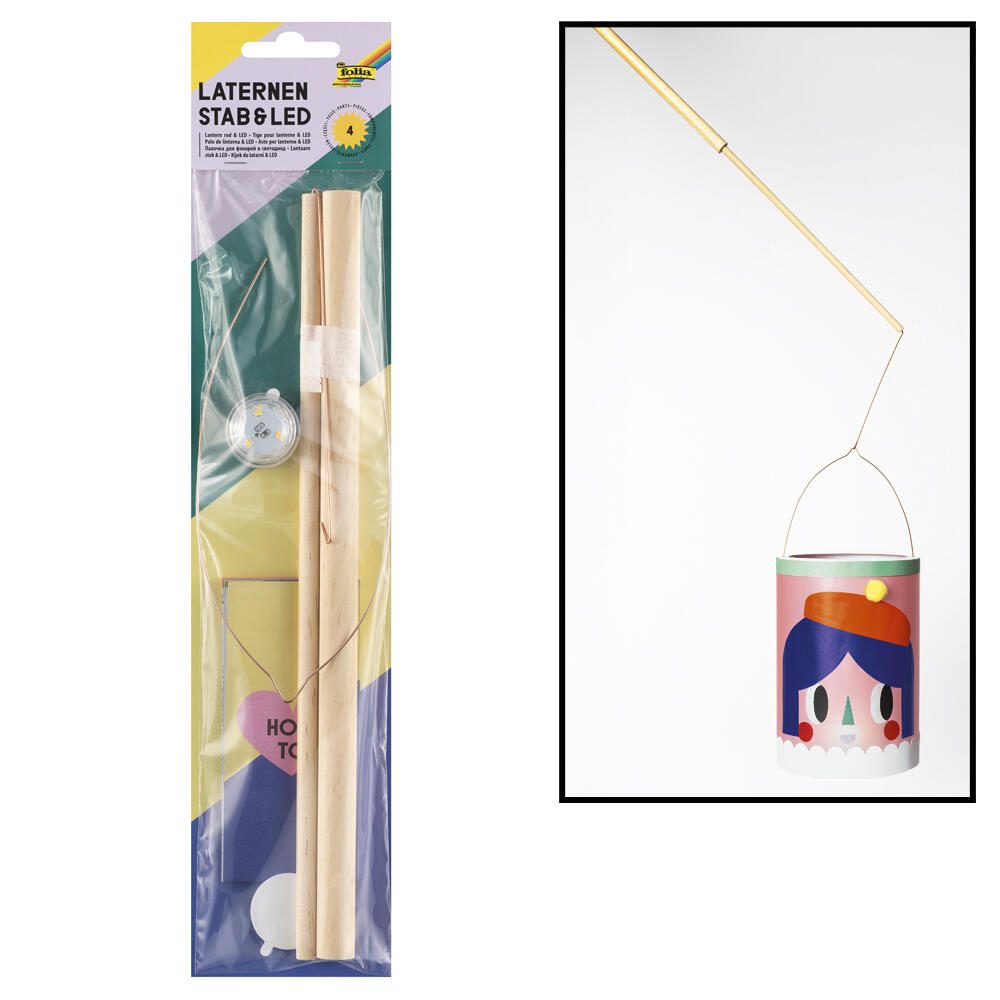 folia Bastelzubehör Laternenstab mit Drahtbügel + 1 LED Licht natur