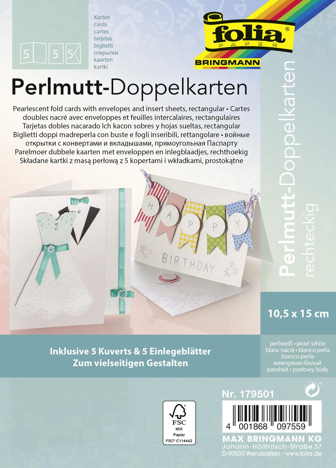 folia Faltkarten mit Briefumschlägen DIN A6 perlweiß