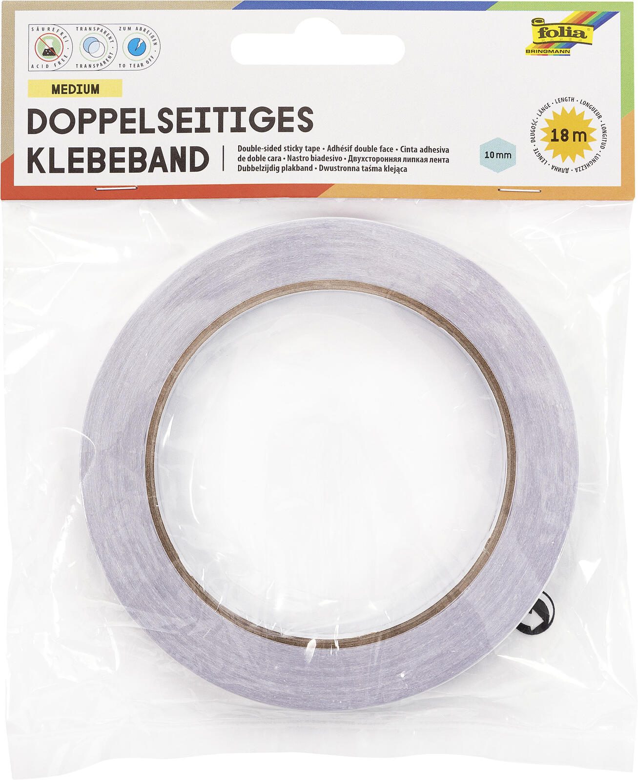 Das doppelseitige Klebeband von folia ist die ideale Lösung für deine Bastel- und Haushaltsprojekte. Mit einer Breite von 10mm und einer Länge von 18m ist es universell einsetzbar. Dank seiner transparenten Farbe passt es sich unauffällig deinen Materialien an.