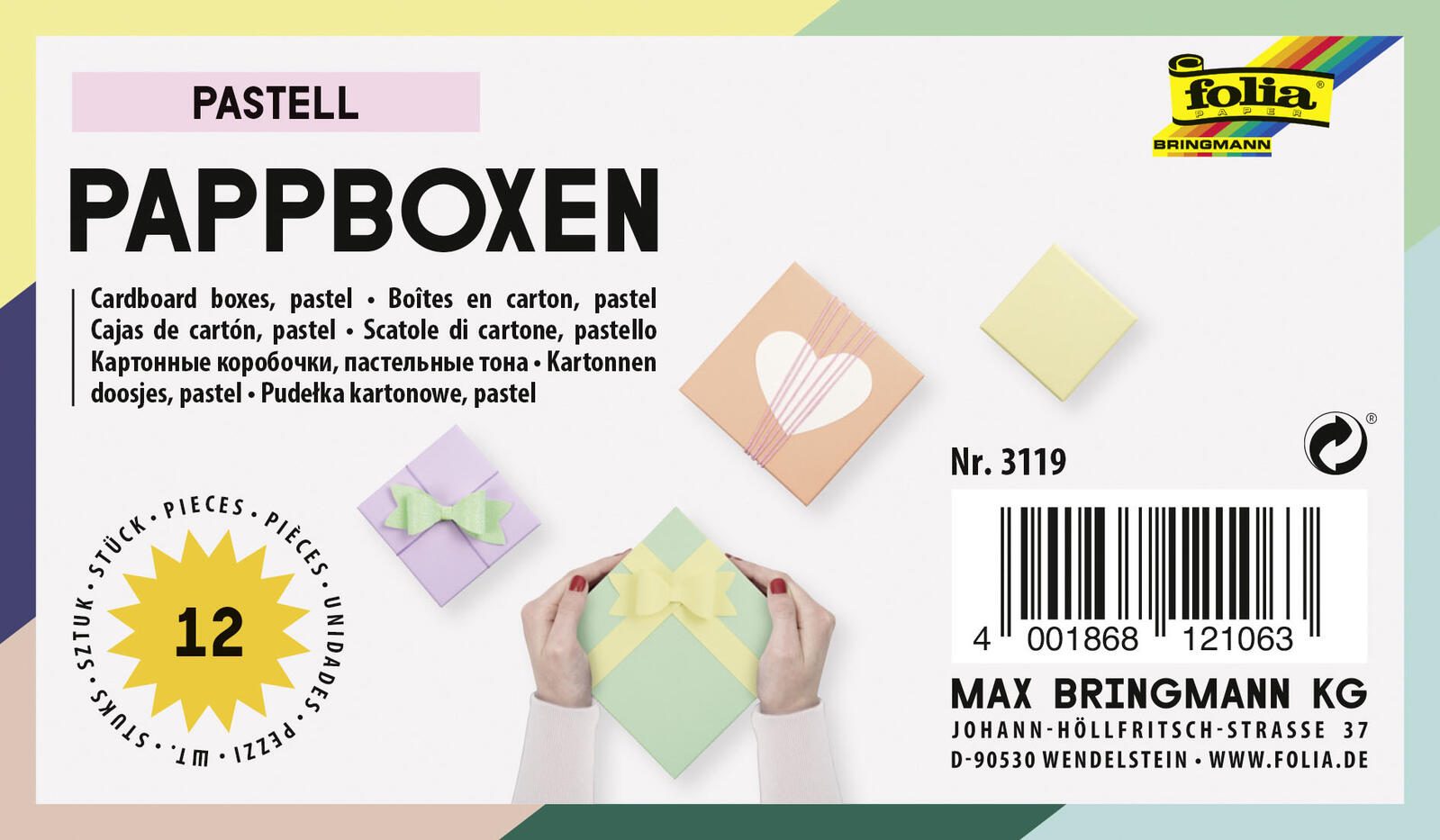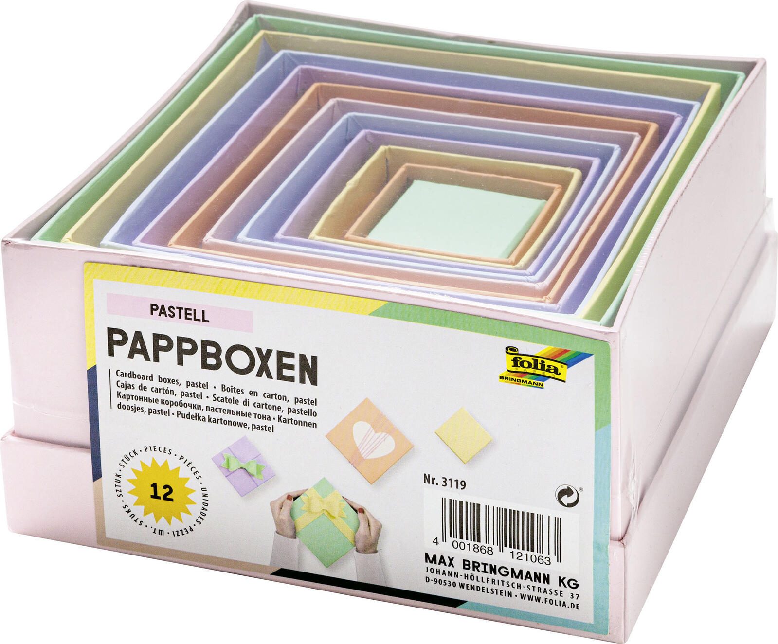 Das folia Geschenkboxen-Set bietet dir eine kreative und praktische Lösung zum Verpacken und Basteln. Mit Außenmaßen von 14,5 x 14,0 x 7,4 cm sind die bunten Boxen ideal für Geschenke aller Art, egal ob für Geburtstage, Feiertage oder besondere Anlässe. Das Set besteht aus 12 liebevoll gestalteten Geschenkboxen, die nicht nur durch ihre ansprechende Farbvielfalt bestechen, sondern auch durch ihre Funktionalität. Hergestellt aus hochwertigem Karton, sind diese Geschenkboxen stabil und sorgen dafür, dass deine Geschenke sicher und stilvoll verpackt sind. Sie sind stapelbar und ineinander stapelbar, was dir ermöglicht, Platz zu sparen und Ordnung zu halten. Die bunten Farben der Boxen verleihen jedem Geschenk eine fröhliche Note und machen das Auspacken zu einem besonderen Erlebnis. Ob du deine Geschenke selbst gestalten oder sie einfach nur schön verpacken möchtest, das folia Geschenkboxen-Set ist die perfekte Wahl. Die Boxen sind vielseitig einsetzbar und eignen sich hervorragend für kreative Bastelprojekte oder als dekorative Aufbewahrungslösungen. Obwohl sie nicht lebensmittelecht sind, bieten sie unzählige Möglichkeiten, um deine Ideen zum Leben zu erwecken. Mit dem folia Geschenkboxen-Set kannst du sicherstellen, dass deine Geschenke nicht nur gut aussehen, sondern auch mit Liebe und Sorgfalt präsentiert werden. Die Kombination aus Funktionalität und ansprechendem Design macht dieses Set zu einem Must-have für jeden, der Freude am Schenken und Basteln hat.Technische Daten