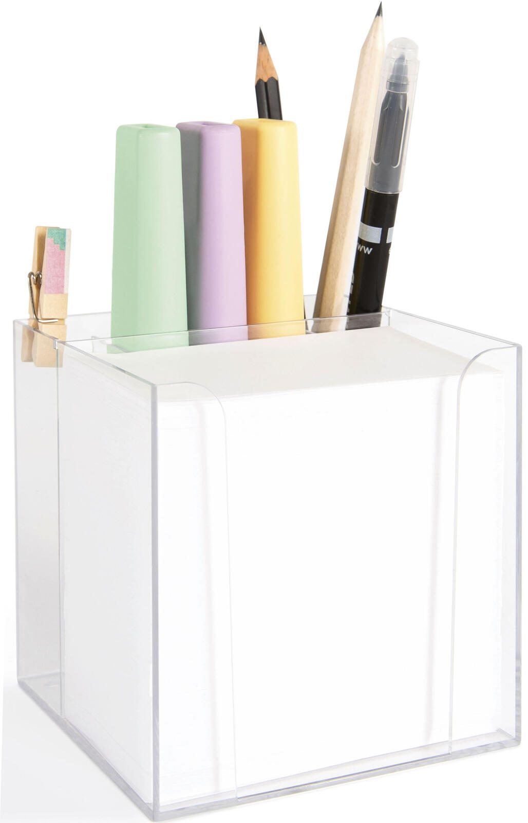 Mit ihrem transparenten Design fügt sich die Zettelbox nahtlos in jedes Dekor ein und lässt sich mühelos mit anderen Büroaccessoires kombinieren. Durch die klare Farbgebung behältst du stets den Überblick über den Inhalt, sodass du immer griffbereite Notizen hast.