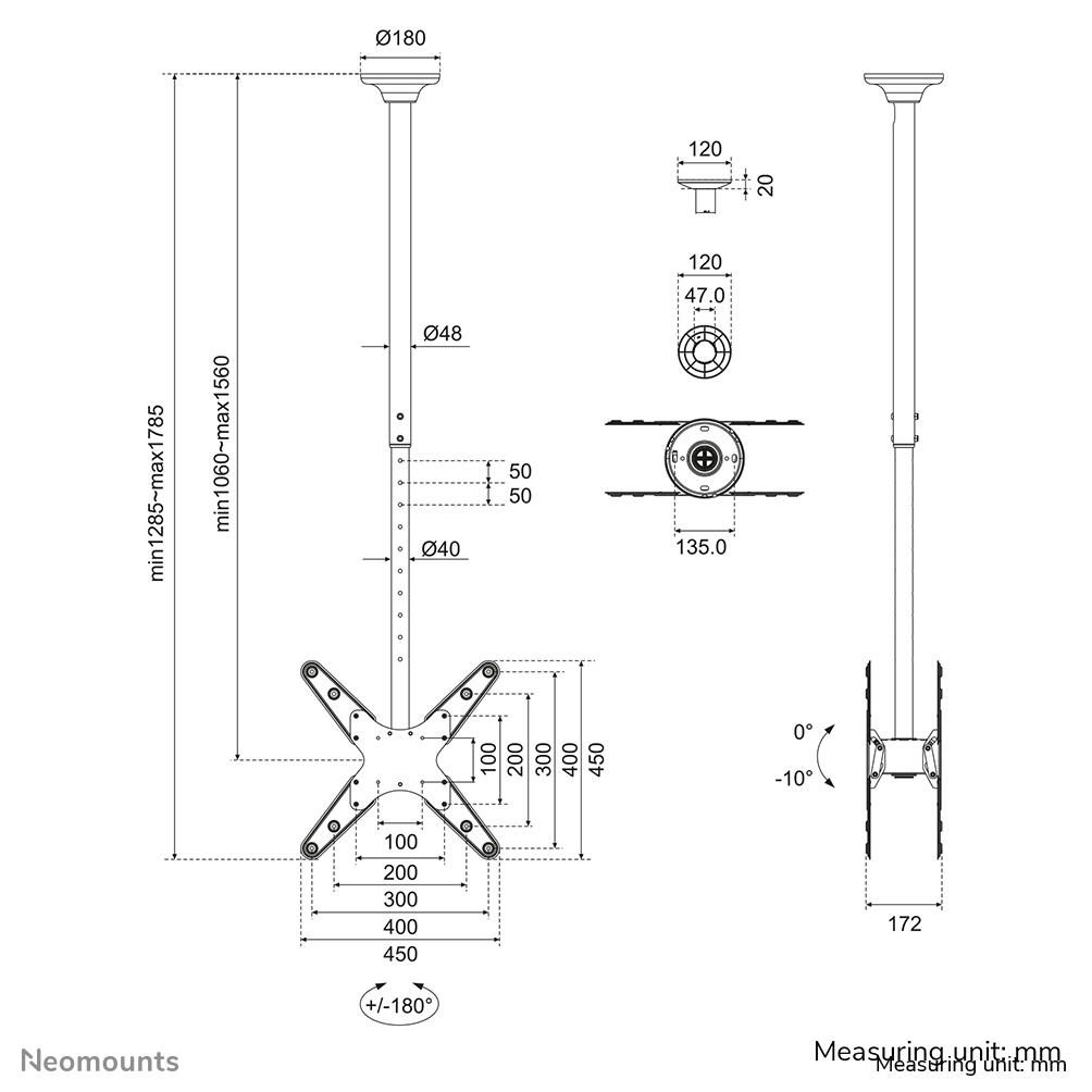* Die Neomounts NS-EP100BLACK ist eine Verlängerungsstange für die Deckenhalterungen Modell NM-C440BLACK, NM-C440DBLACK und FPMA-C340BLACK. Diese Verlängerungsstange erlaubt es, die Höhe der Deckenhalterung um zusätzliche 107,5 cm zu verlängern.