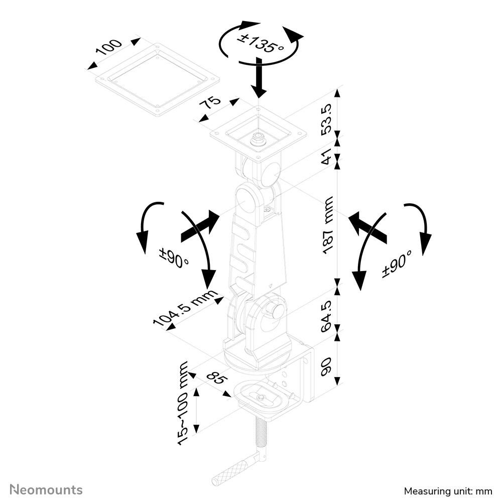 - Neigung: 180°, Höhenverstellung: 7-30 cm, Rotation: 270°, Schwenkung: 180°