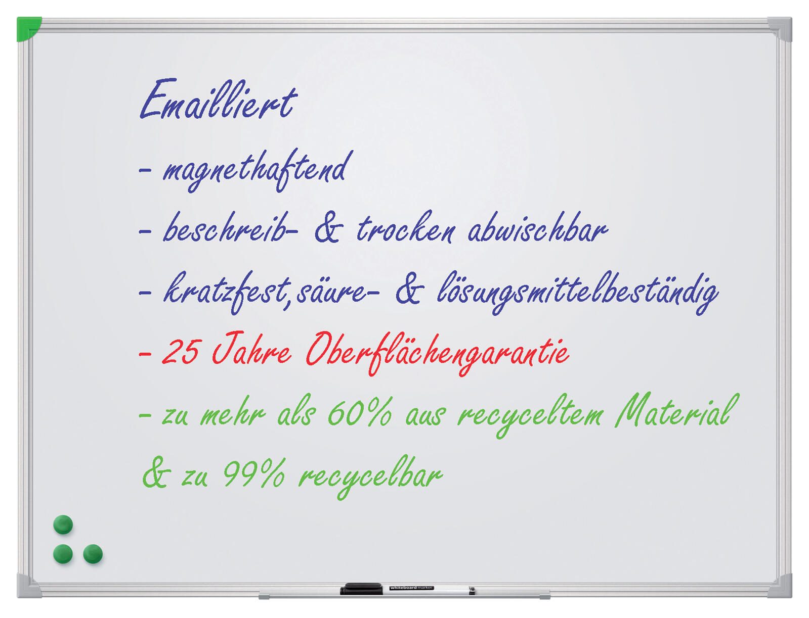 - Materialeigenschaften: magnethaftend, beschreibbar