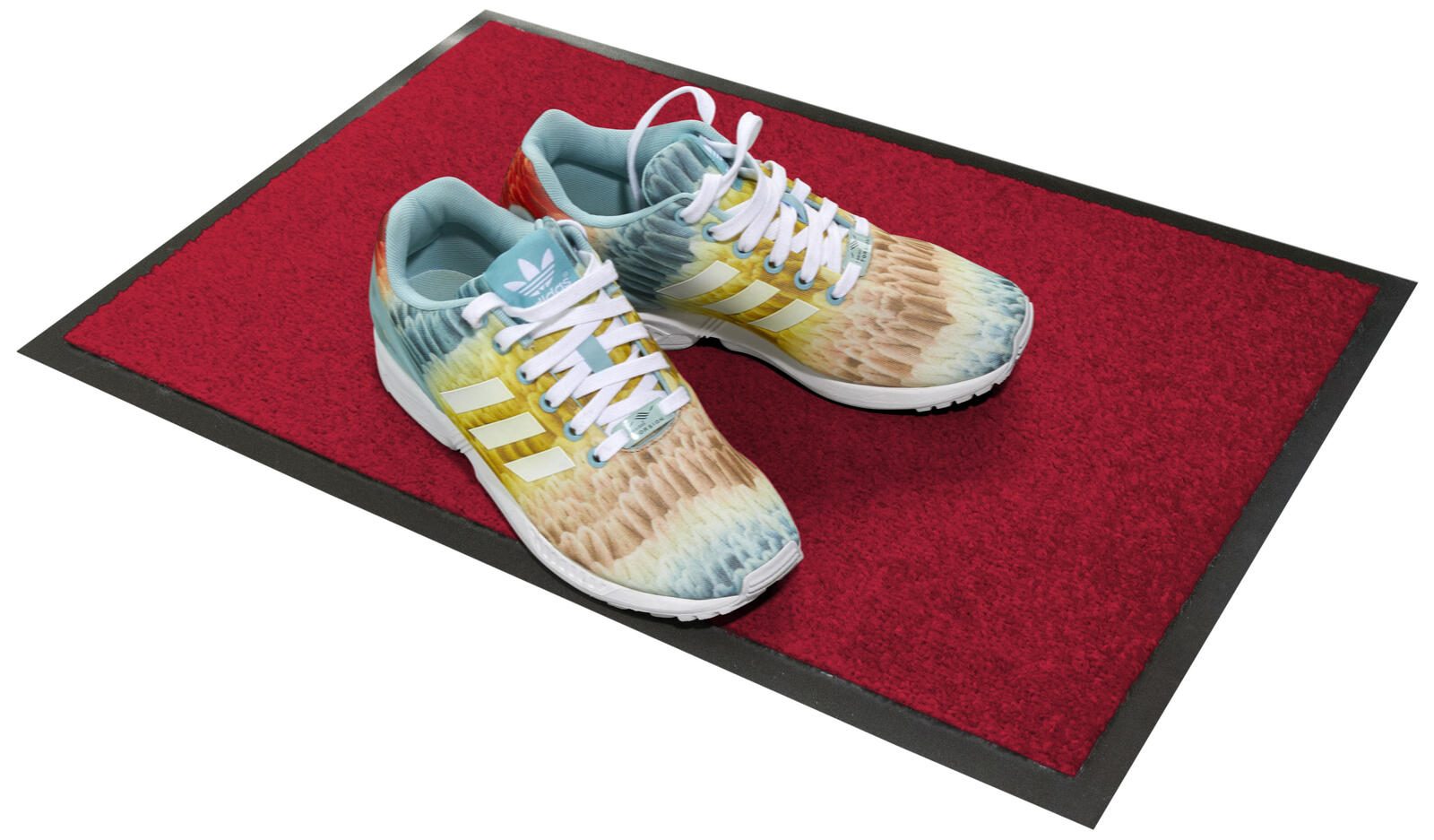 Die Mercury Fußmatte Alpha in der auffälligen Farbe Rot ist die perfekte Ergänzung für jeden Innenbereich. Mit ihren kompakten Maßen von 40,0 x 60,0 cm passt sie ideal vor jede Tür und sorgt dafür, dass Schmutz und Staub von deinen Böden ferngehalten werden. Ihr rechteckiges Design und die lebendige Farbgebung verleihen jedem Raum einen frischen Akzent und heißen Gäste herzlich willkommen. Hergestellt aus 100% Polyprop twisted heatset, bietet die Fußmatte nicht nur eine ansprechende Optik, sondern auch eine angenehme Haptik. Die robuste Oberflächenstruktur sorgt dafür, dass die Matte auch bei häufigem Betreten ihre Form und Farbe behält. Die Unterseite aus 100% Vinyl gewährleistet eine stabile Positionierung auf dem Boden, auch wenn die Matte stark beansprucht wird. Trotz der Tatsache, dass die Fußmatte nicht rutschfest ist, sorgt die Stoßkante für eine erhöhte Sicherheit, indem sie Stolperfallen minimiert. Ein weiterer Vorteil der Mercury Fußmatte Alpha ist ihre Waschbarkeit. Du kannst sie bei bis zu 30°C in der Handwäsche reinigen, was die Pflege und Instandhaltung besonders einfach macht. Dies ist besonders wichtig, um die frische und Sauberkeit in deinem Wohnraum zu bewahren. Ob im Flur, in der Küche oder im Badezimmer, diese Fußmatte ist vielseitig einsetzbar und bringt nicht nur Funktionalität, sondern auch Stil in dein Zuhause. Die Mercury Fußmatte Alpha ist die ideale Wahl für alle, die Wert auf Qualität und Design legen.Technische Daten