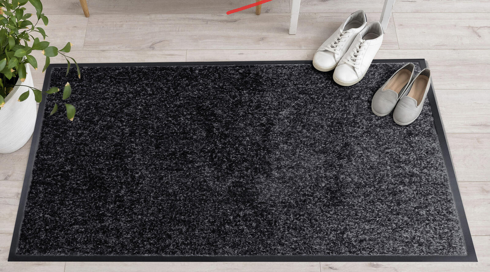 Die Mercury Fußmatte Alpha in der Größe 80,0 x 120,0 cm ist die ideale Ergänzung für deinen Innenbereich. Mit ihrem eleganten schwarzen Design fügt sie sich harmonisch in jede Raumgestaltung ein und sorgt für einen ansprechenden Eingangsbereich. Die rechteckige Form der Matte bietet eine großzügige Fläche, um Schmutz und Nässe von deinen Schuhen effektiv abzuhalten. Hergestellt aus 100% Polyprop twisted heatset, zeichnet sich die Fußmatte durch ihre Langlebigkeit und Strapazierfähigkeit aus. Der Flor ist nicht nur angenehm zu betreten, sondern auch pflegeleicht; die Matte ist bis zu 30°C handwaschbar, sodass du sie einfach reinigen kannst, um stets einen sauberen Eindruck zu hinterlassen. Die Unterseite besteht aus 100% Vinyl, was für eine sichere und rutschfeste Lage auf dem Boden sorgt, auch wenn die Matte selbst nicht über einen speziellen Antirutsch-Effekt verfügt. Die Mercury Fußmatte Alpha ist mit einer Stoßkante ausgestattet, die das Betreten erleichtert und ein Umknicken verhindert. Diese Funktion ist besonders vorteilhaft in stark frequentierten Bereichen, wo Sicherheit und Komfort an erster Stelle stehen. Obwohl sie nicht für Holzböden oder Fußbodenheizungen geeignet ist, ist sie eine hervorragende Wahl für Fliesen oder andere robuste Bodenbeläge. Insgesamt bietet die Mercury Fußmatte Alpha eine gelungene Kombination aus Funktionalität und zeitloser Ästhetik, die deinen Innenraum aufwertet und gleichzeitig für Sauberkeit sorgt.Technische Daten