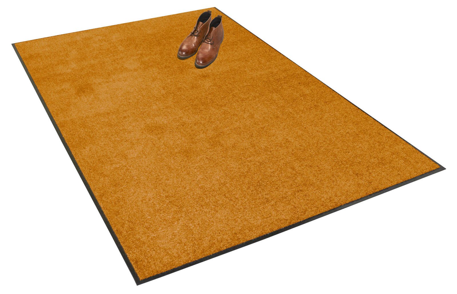 Die Fußmatte ist in einem lebendigen Orangeton gehalten und bringt somit Frische und Energie in deinen Wohnraum. Trotz ihrer auffälligen Farbe passt sie durch ihr schlichtes, rechteckiges Design gut zu verschiedenen Einrichtungsstilen.