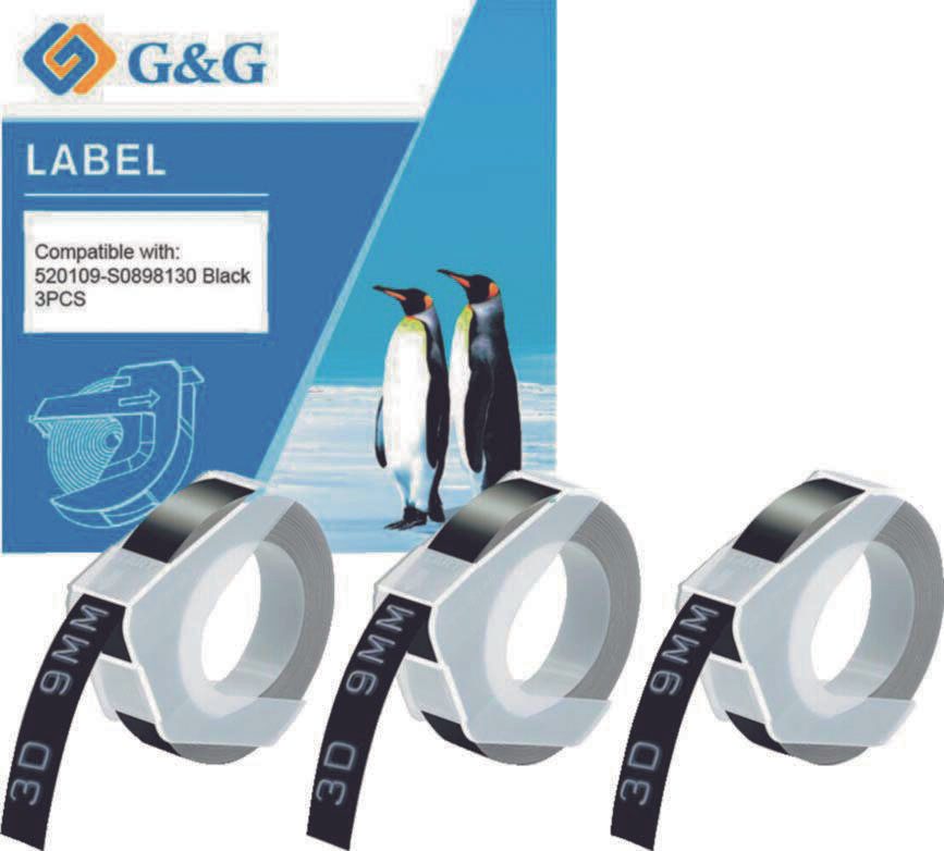 G&G Prägebänder 3D ersetzt Dymo S0847730, 9 mm, weiß auf schwarz 1 Set = 3 Set