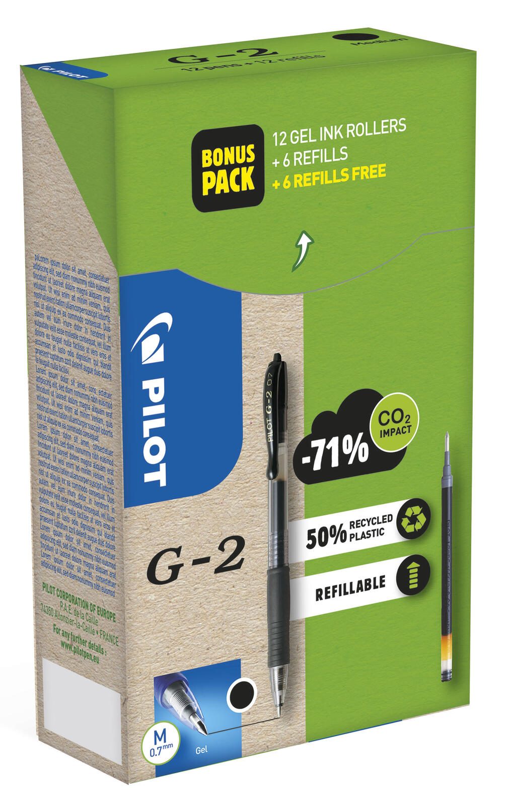 PILOT G2 + 12 Minen Gelschreiber-Set 0.4 mm, Schreibfarbe: Schwarz