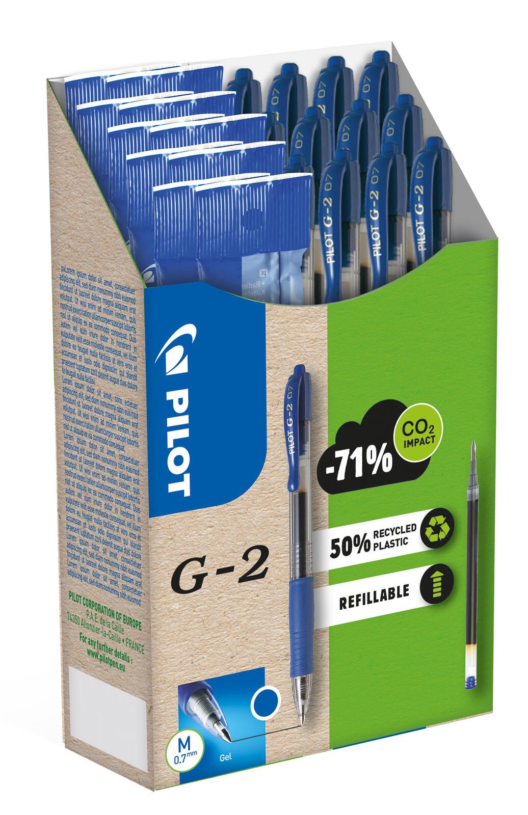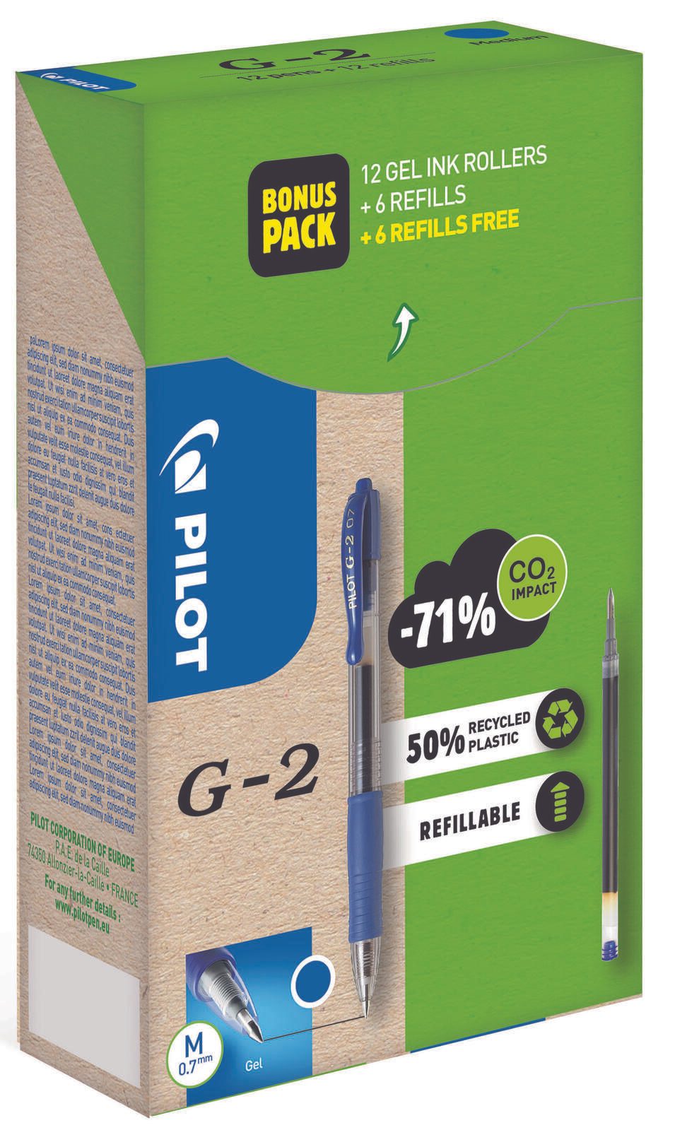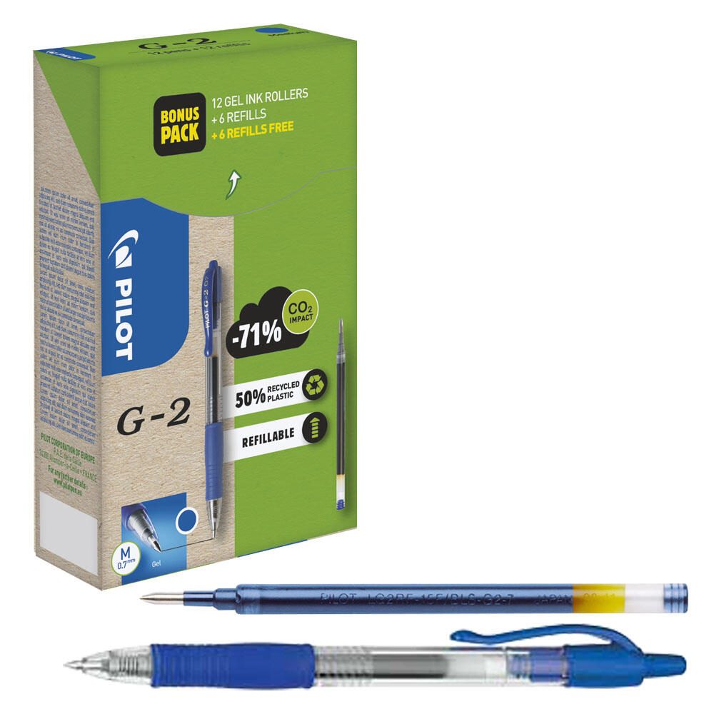 PILOT G2 + 12 Minen Gelschreiber-Set 0.4 mm, Schreibfarbe: Blau