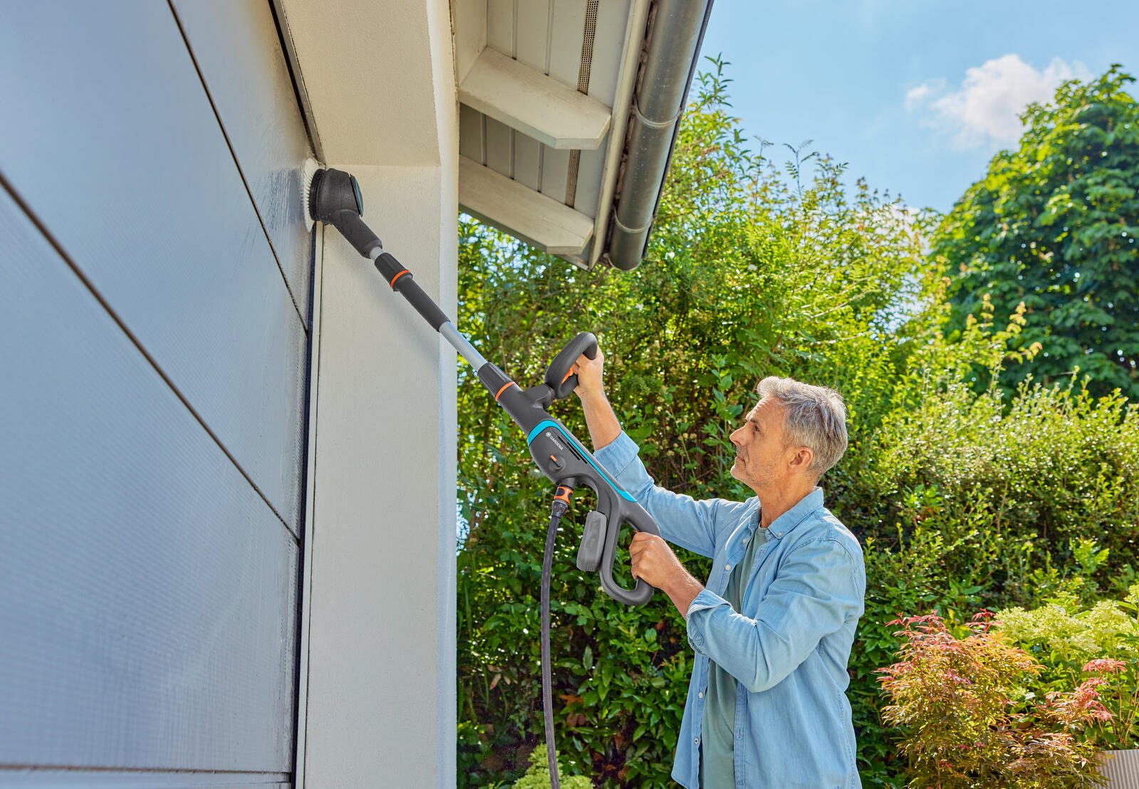 Ein weiterer Vorteil dieses Aufsatzes ist die einfache Handhabung: Das Anbringen und Entfernen am Multi-Reiniger erfolgt schnell und unkompliziert, was den Wechsel zwischen verschiedenen Reinigungsaufgaben erleichtert. So sparen Sie Zeit und Aufwand bei der Pflege Ihrer Außenbereiche.