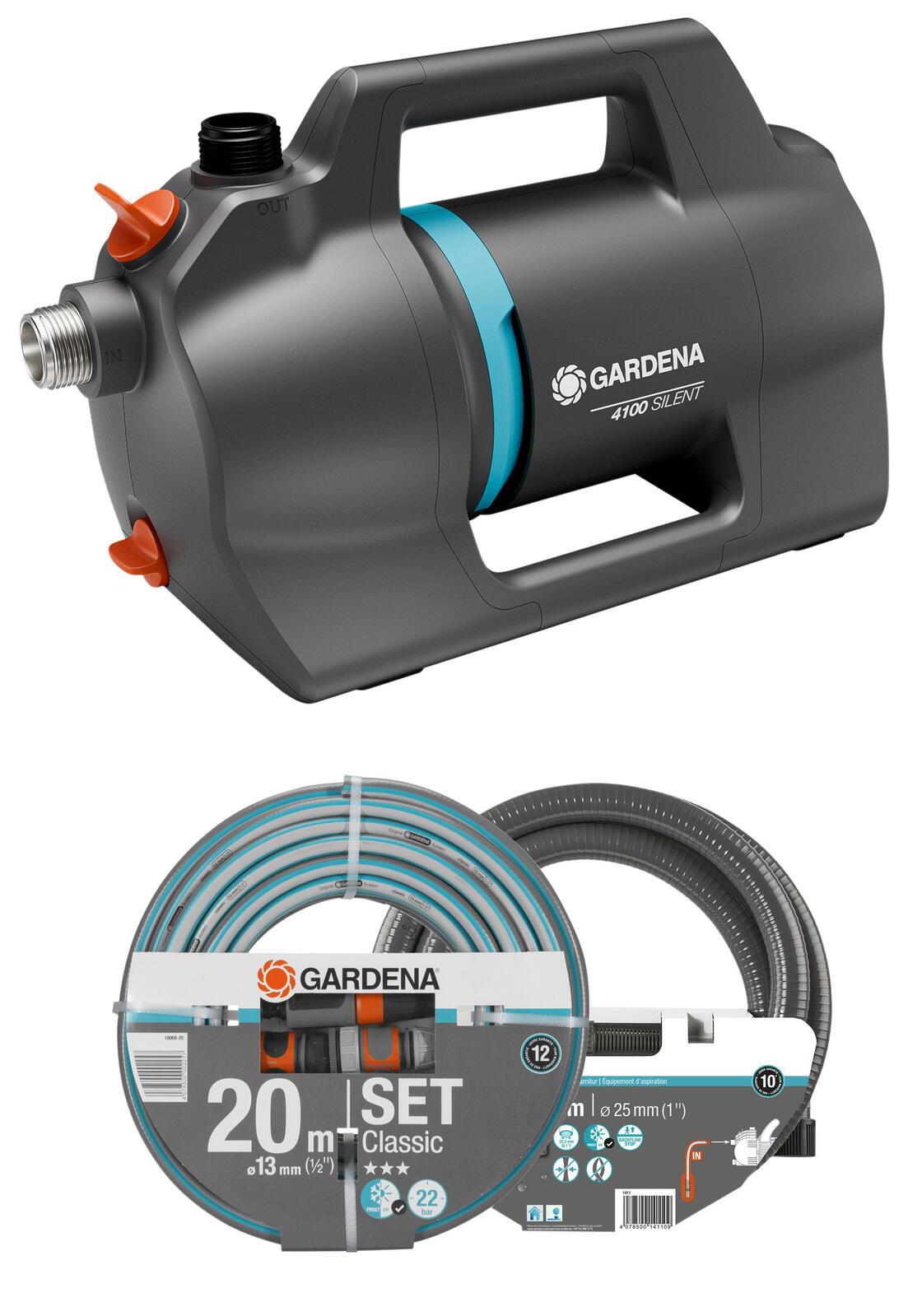 - Lieferung inkl.: 3,5 m Saugschlauch, 20 m Schlauch Gardena Classic