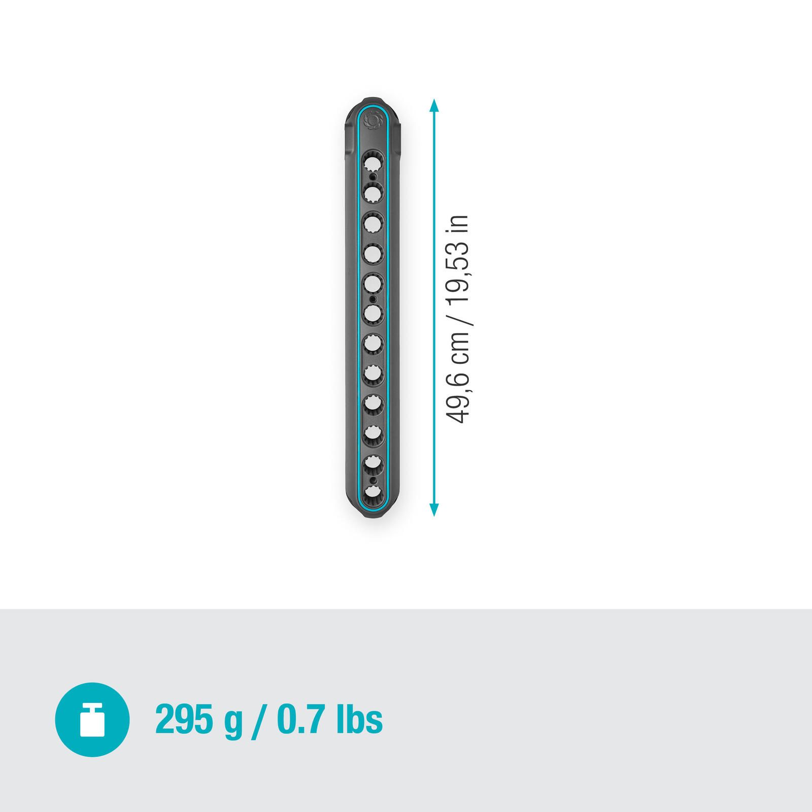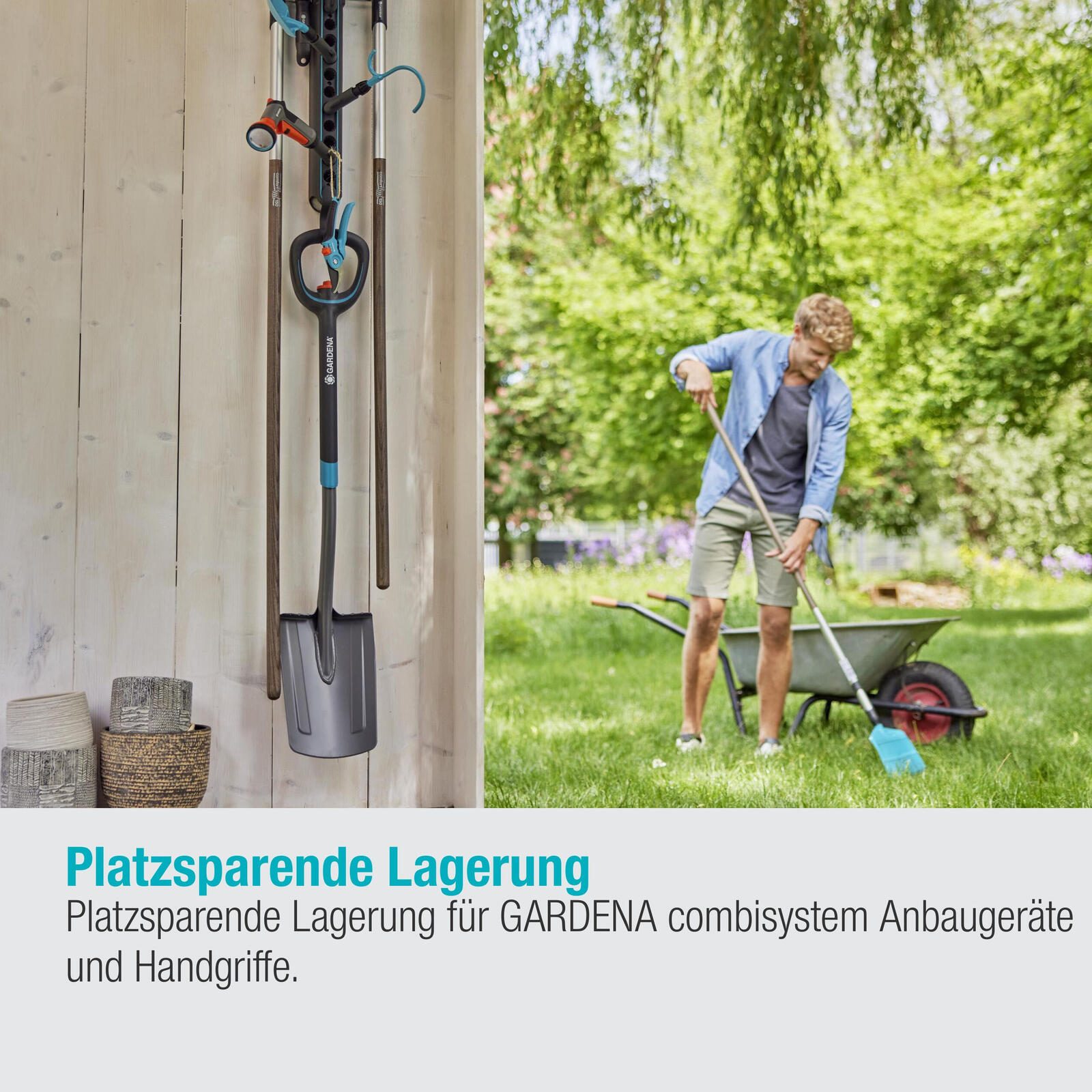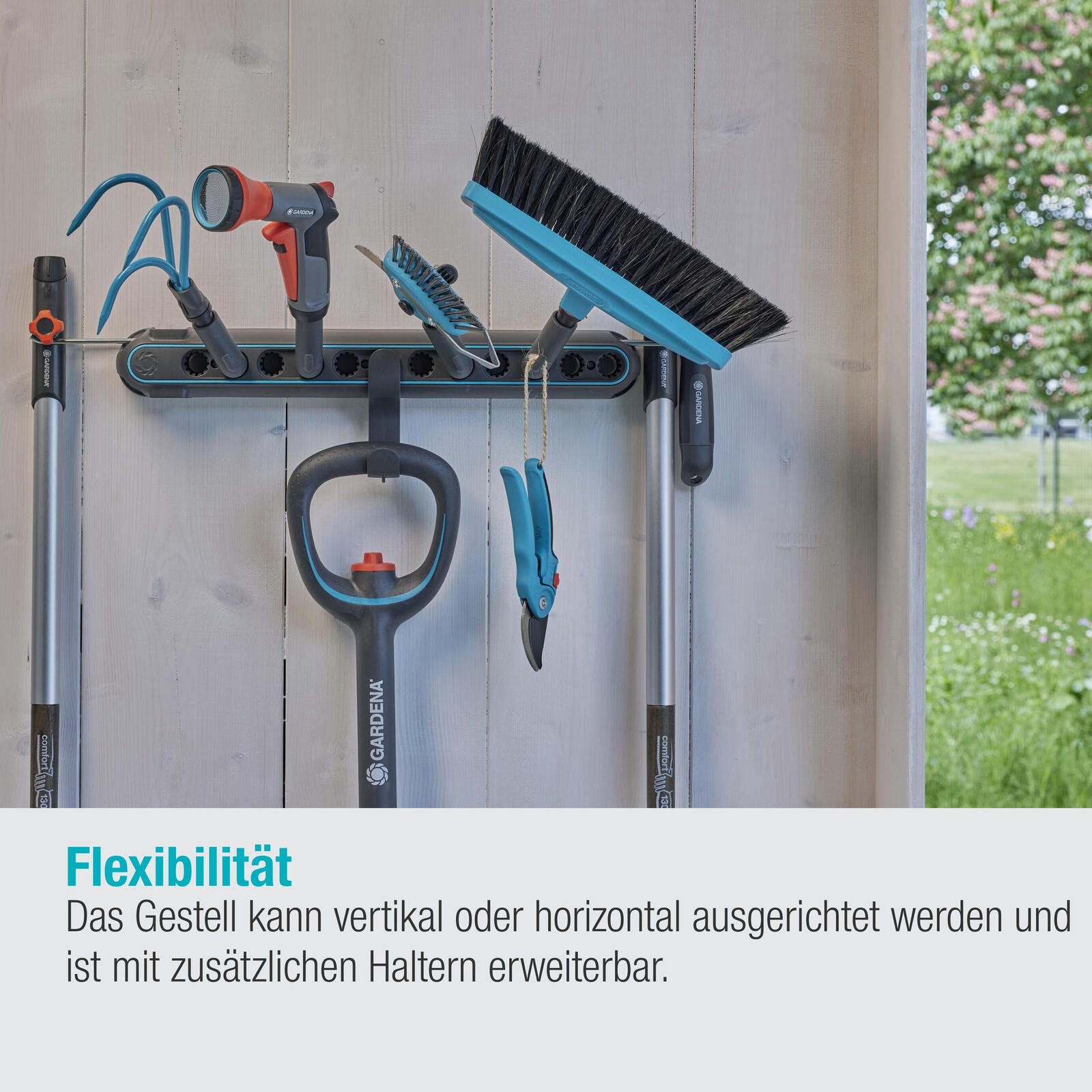 Die GARDENA Geräteleiste Flex ist ein unverzichtbares Accessoire für die Organisation deiner Gartengeräte. Mit ihrem markanten grau-blauen Farbton und der hochwertigen Kunststoff- und Metallverarbeitung ist diese Geräteleiste nicht nur funktional, sondern auch stilvoll. Der Besenhalter aus der combisystem-Serie von GARDENA eignet sich perfekt für combisystem-Produkte und Stiele. Darüber hinaus kannst du problemlos Gartenscheren, Scheren und OGS Anschlussgeräte sicher und platzsparend an der Geräteleiste aufbewahren. Dank des durchdachten Designs der GARDENA Geräteleiste Flex hast du all deine Gartengeräte immer griffbereit und ordentlich verstaut. Die hochwertigen Materialien sorgen für eine lange Lebensdauer und machen sie zu einem zuverlässigen Begleiter bei der Gartenarbeit. Mit dieser praktischen und robusten Geräteleiste von GARDENA kannst du deine Arbeitsabläufe optimieren und gleichzeitig für Ordnung in deinem Gartenschuppen oder der Garage sorgen. Hol dir jetzt die GARDENA Geräteleiste Flex und erlebe, wie einfach und effizient die Organisation deiner Gartengeräte sein kann.Technische Daten
