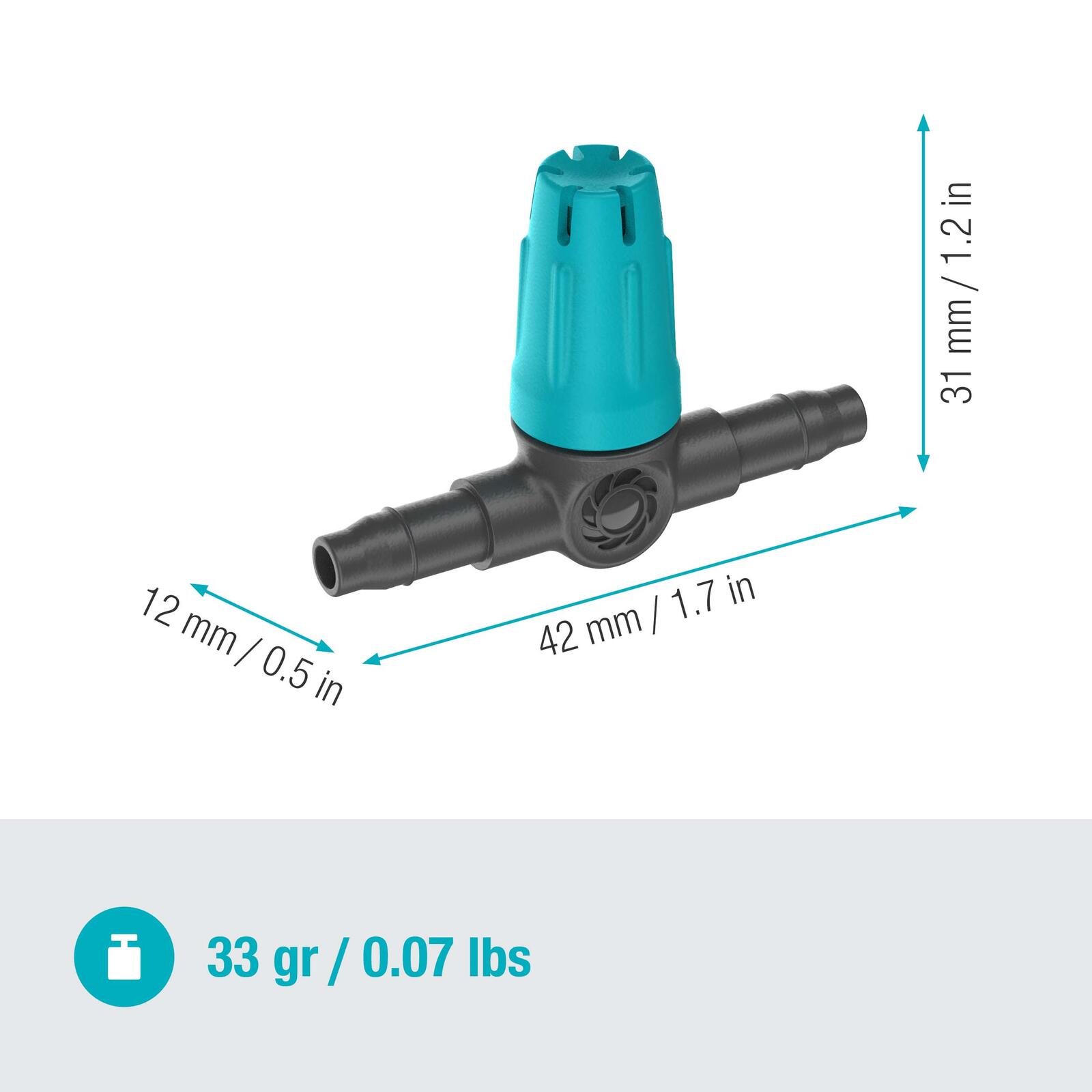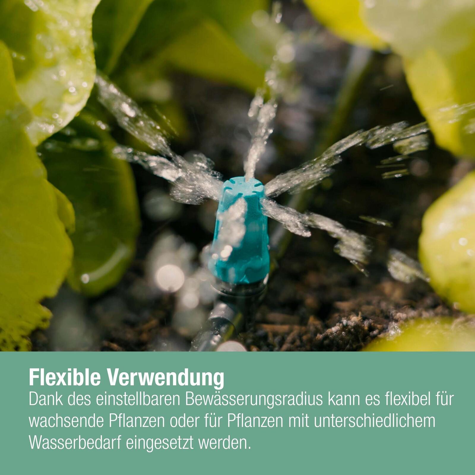 Die GARDENA Regneranschluss Micro-Drip-System Kleinflächendüse ist die ideale Lösung für eine präzise und effiziente Bewässerung deiner kleinen Flächen. Mit einem Gesamtinhalt von 10 Reihen-Kleinflächendüsen bietet dieses Set alles, was du benötigst, um deine Pflanzen optimal zu versorgen. Hergestellt aus hochwertigem Kunststoff, zeichnen sich die Düsen durch ihre Langlebigkeit und Widerstandsfähigkeit aus, während die ansprechende Farbgestaltung in Schwarz und Türkis nicht nur funktional, sondern auch ästhetisch ansprechend ist. Diese Kleinflächendüse ist speziell für die Verwendung mit einem 4,6 mm (3/16") Verteilerrohr (Art. Nr. 1348/1350) konzipiert, was eine einfache Integration in dein bestehendes Bewässerungssystem ermöglicht. Die präzise Wasserabgabe sorgt dafür, dass deine Pflanzen genau die Menge Wasser erhalten, die sie benötigen, ohne dass es zu Verschwendung kommt. Dies ist besonders wichtig in Zeiten von Wasserknappheit oder bei der Pflege empfindlicher Pflanzen. Die GARDENA Kleinflächendüse ist nicht nur einfach zu installieren, sondern auch leicht zu reinigen und zu warten. Die robuste Bauweise garantiert eine langfristige Nutzung, sodass du dich auf eine zuverlässige Bewässerung verlassen kannst. Mit dieser Lösung kannst du sicherstellen, dass deine Blumenbeete, Gemüsebeete oder andere kleine Gartenflächen immer optimal versorgt sind. Dank der innovativen Technik des Micro-Drip-Systems wird die Bewässerung nicht nur effizienter, sondern auch umweltfreundlicher. Du kannst deine Gartenarbeit mit einem guten Gewissen genießen, da du Ressourcen schonst und gleichzeitig hervorragende Ergebnisse erzielst. Die GARDENA Regneranschluss Micro-Drip-System Kleinflächendüse ist die perfekte Ergänzung für jeden Gartenliebhaber, der Wert auf Qualität und Effektivität legt.Technische Daten