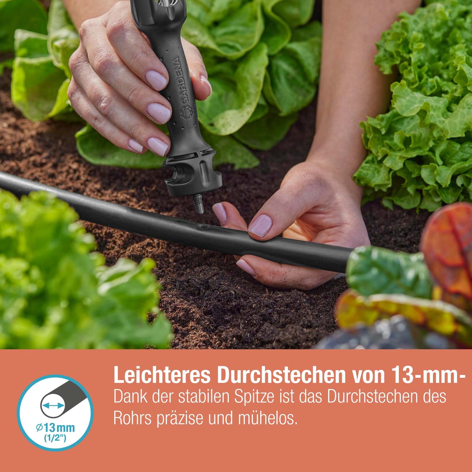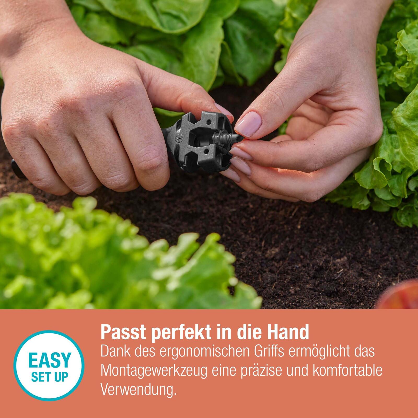 Das GARDENA Montagewerkzeug Micro-Drip-System ist ein unverzichtbares Universalwerkzeug, das speziell für die Montage verschiedener Artikel und die Lochung des Verlegerohres entwickelt wurde. Mit diesem praktischen Werkzeug wird die Installation deines Bewässerungssystems zum Kinderspiel. Hergestellt aus hochwertigem Kunststoff, bietet das Montagewerkzeug eine langlebige und zuverlässige Lösung für alle deine Gartenbedürfnisse. Die elegante schwarze Farbe des Werkzeugs verleiht ihm nicht nur ein modernes Aussehen, sondern sorgt auch dafür, dass es in jeder Umgebung gut aussieht. Egal, ob du ein erfahrener Gärtner oder ein Hobbyist bist, das GARDENA Montagewerkzeug ist einfach zu handhaben und ermöglicht es dir, dein Micro-Drip-System effizient zu installieren. Die Benutzerfreundlichkeit steht bei diesem Produkt im Vordergrund. Mit dem GARDENA Montagewerkzeug bist du in der Lage, verschiedene Komponenten deines Bewässerungssystems schnell und sicher zu montieren, wodurch du Zeit und Mühe sparst. Die präzise Lochung des Verlegerohres sorgt dafür, dass das Wasser genau dort ankommt, wo es benötigt wird, und trägt so zu einer optimalen Bewässerung deiner Pflanzen bei. Dank seiner Vielseitigkeit ist das GARDENA Montagewerkzeug Micro-Drip-System die perfekte Wahl für jeden Gartenliebhaber, der Wert auf Qualität und Effizienz legt. Vertraue auf die bewährte Marke GARDENA, die für innovative Lösungen im Bereich der Gartenbewässerung bekannt ist, und mache deinen Garten zur blühenden Oase, die du dir immer gewünscht hast.Technische Daten