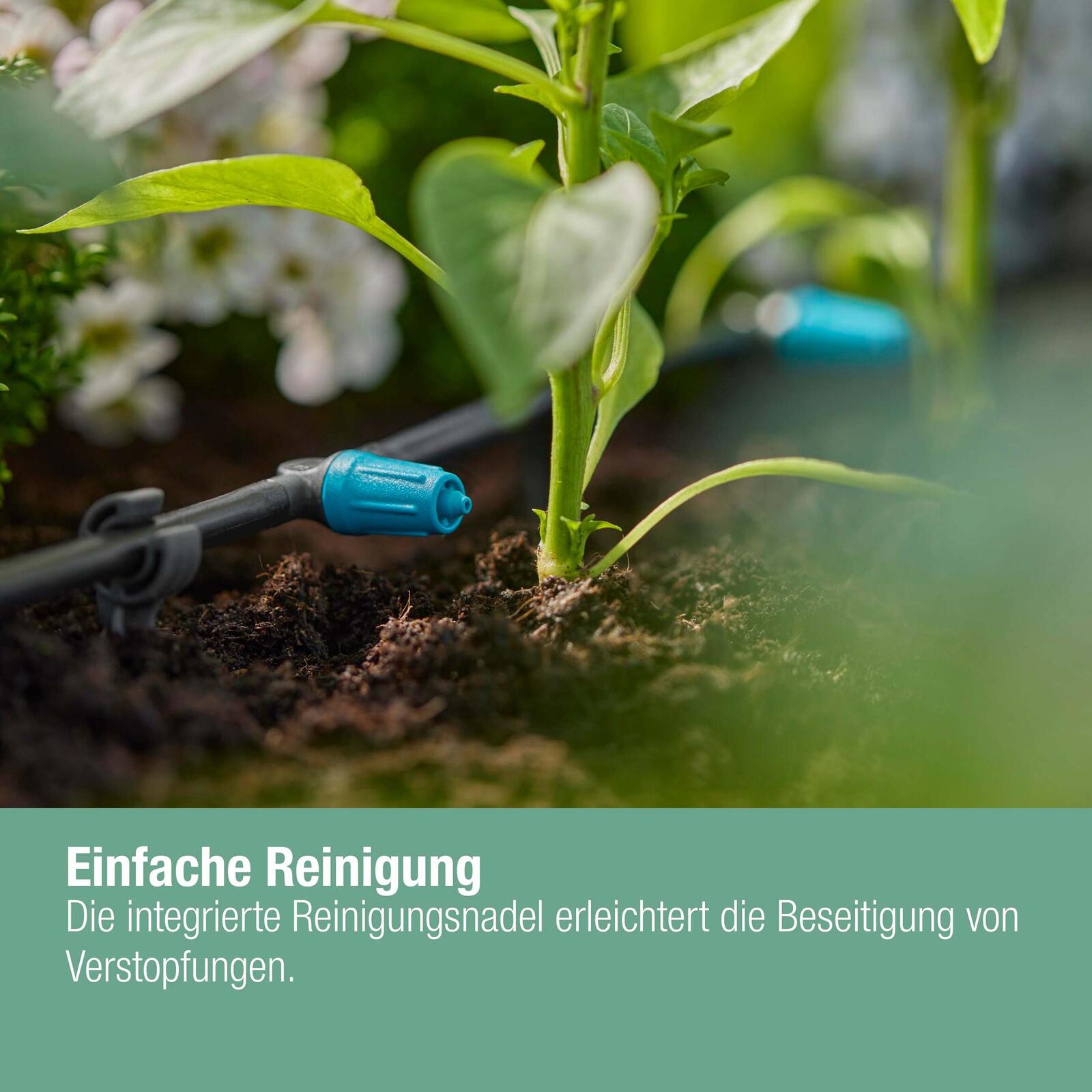 Die GARDENA Reihentropfer für das Micro-Drip-System erleichtern dir die Pflege deines Gartens und helfen dir, Wasser zu sparen, indem nur die benötigte Menge direkt an die Wurzeln gelangt. Vertraue auf die Qualität und Erfahrung von GARDENA, um deine Pflanzen optimal zu versorgen.