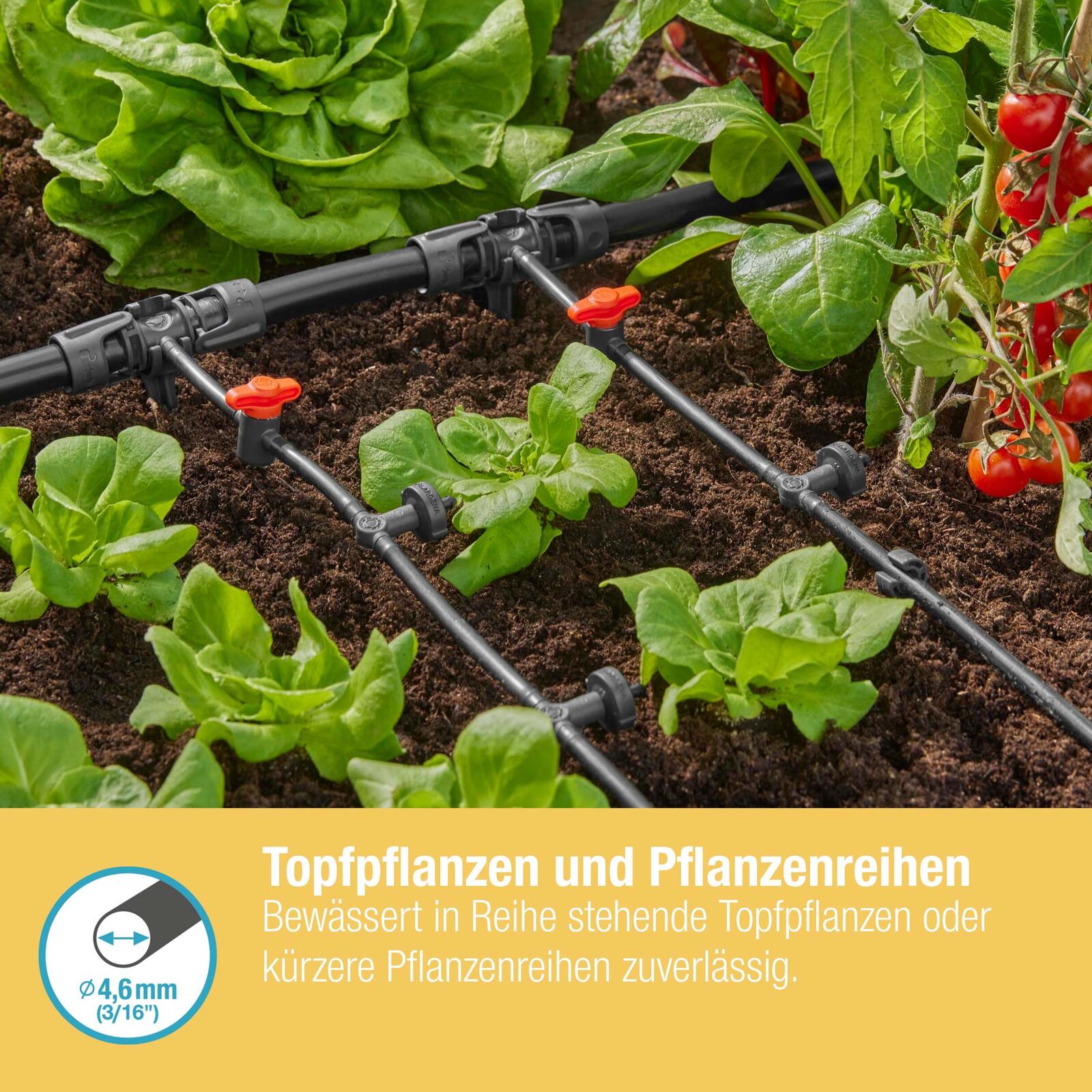 Dank des Reihentropfers kannst du gezielt und effizient bewässern. Er ist perfekt für den Einsatz mit dem 4,6 mm (3/16") Verteilerrohr (Art. Nr. 1348/1350) geeignet. Die Serie Micro-Drip-System steht für präzise Bewässerungslösungen, die dir helfen, Wasser zu sparen und deine Pflanzen optimal zu versorgen.