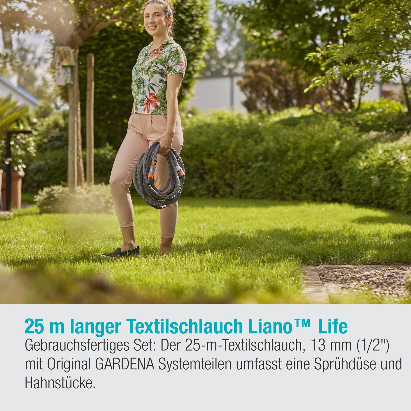 Das Material aus Textilgewebe sorgt nicht nur für die Robustheit des Schlauchs, sondern macht ihn auch besonders flexibel und knickfest. So kannst du ihn mühelos durch deinen Garten führen, ohne dass er an Ecken oder Hindernissen hängen bleibt. Mit dem GARDENA Gartenschlauch Life 1/2" Set wird die Bewässerung zu einer einfachen und effizienten Aufgabe, damit du mehr Zeit hast, deinen grünen Oase zu genießen.