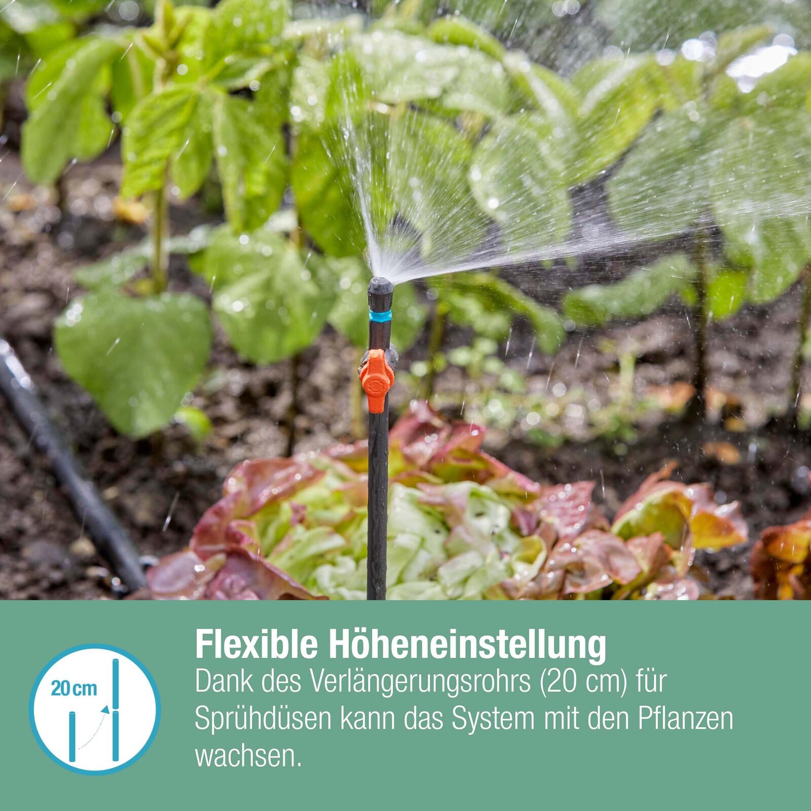 Diese spezielle Düse ist mit dem Verlegerohr Flex 13 mm (1/2") (Art.-Nr. 1347/1346) oder einem T-Stück für Sprühdüsen (Art.-Nr. 13206/13216) kompatibel. Durch die Verwendung des Montagewerkzeugs (Art.-Nr. 13313) lässt sie sich einfach installieren. Außerdem kann die Sprühweite mithilfe des Regulierventils (Art.-Nr. 13231) individuell angepasst werden, um eine präzise Bewässerung deiner Pflanzen zu gewährleisten.