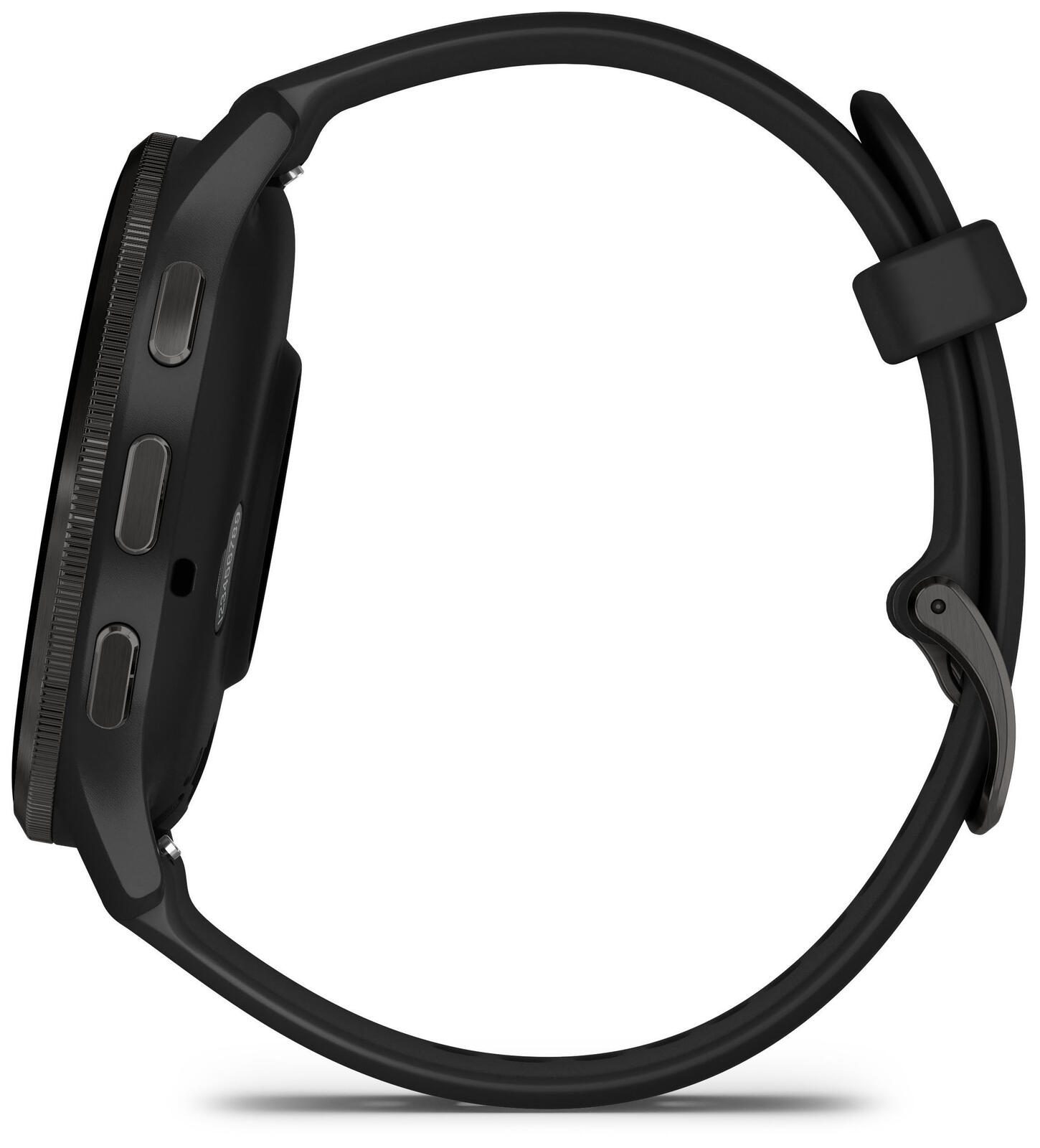 - Eigenschaften: Anruf anzeigen/annehmen, Garmin Pay, Herzfrequenzmessung, Lautsprecher integriert, Mikrofon integriert, Musiksteuerung, Schlafanalyse, Sprachsteuerung, Schrittzähler, Vibrationsalarm
