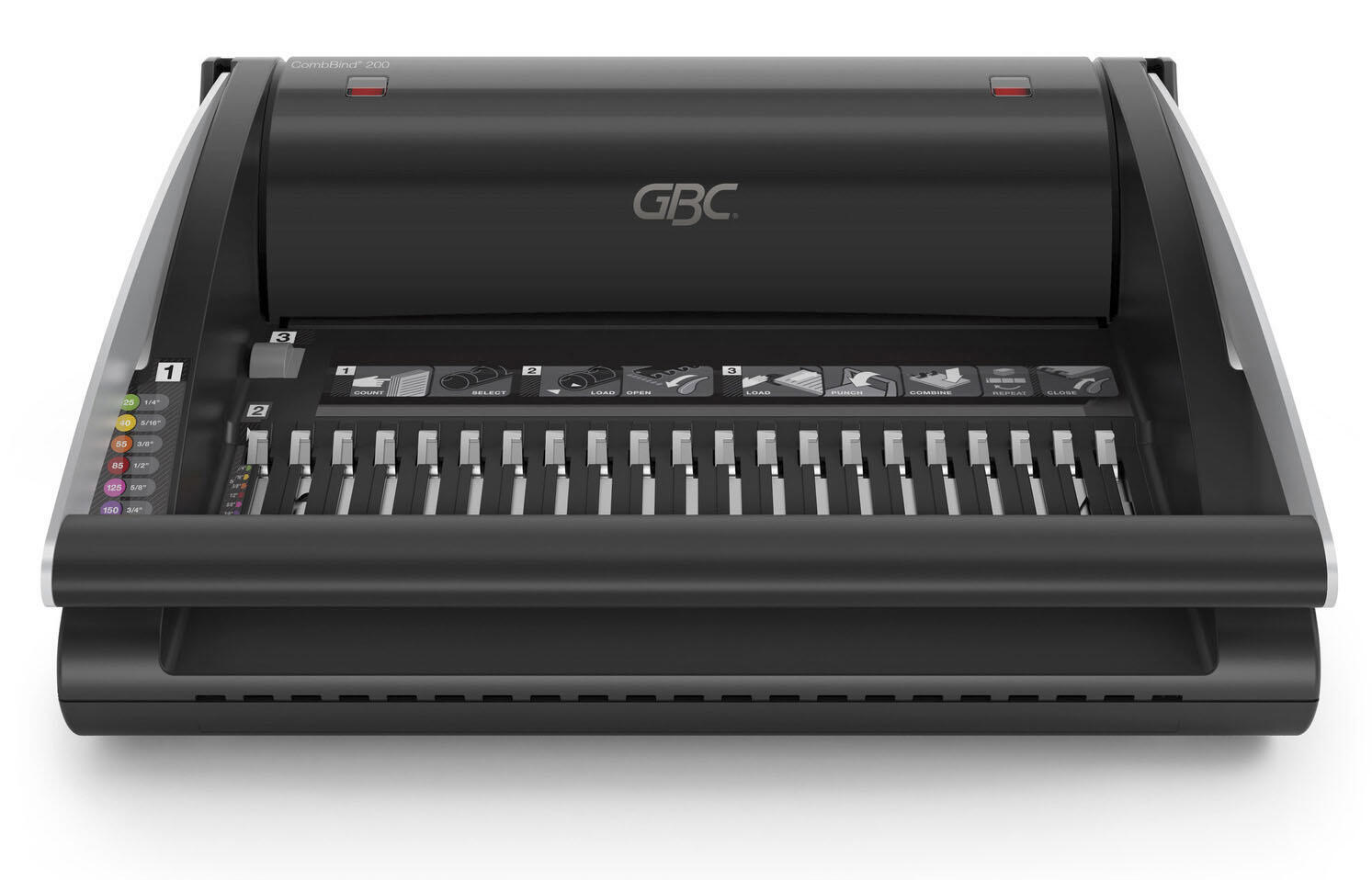 Das Kunststoffbindegerät in elegantem Schwarz bietet eine einfache Bedienung dank Farbcodes und Piktogrammen. Hergestellt von GBC, ist dieses Gerät speziell für DIN A4 Formate ausgelegt. Mit einer US-Teilung von 21 Ringen auf A4 bietet dir die GBC Bindemaschine Combbind 200 die perfekte Lösung zum Binden deiner Unterlagen.