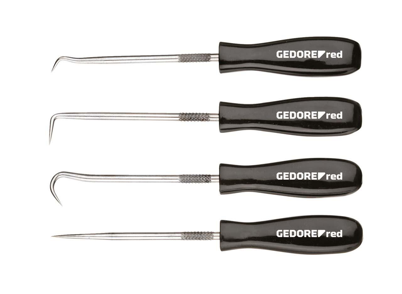 Der GEDOREred R19101001 Hakensatz ist ein praktisches Werkzeugset, das speziell für Arbeiten an der Karosserie-Innenausstattung entwickelt wurde. Mit einer Länge von 135,0 mm eignet sich dieser Hakensatz ideal für die Montage und Demontage von O-Ringen sowie Dichtungen in den Bereichen Motor, Getriebe, Lenkung und Hydraulik. Die vierteilige Ausführung bietet dabei vielseitige Einsatzmöglichkeiten.