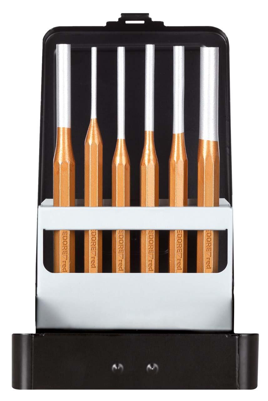 Das GEDOREred R90200106 Splinttreiberset besteht aus sechs hochwertigen Splinttreibern mit flacher Spitze, gefertigt aus robustem Chrom-Vanadium-Stahl. Dieses Material zeichnet sich durch seine hohe Festigkeit und Langlebigkeit aus, was eine zuverlässige Nutzung auch unter anspruchsvollen Bedingungen garantiert. Die Schäfte der Treiber sind kupferfarben gestaltet, während die Spitzen silber lackiert sind, was nicht nur optisch ansprechend ist, sondern auch den Schutz vor Korrosion erhöht.