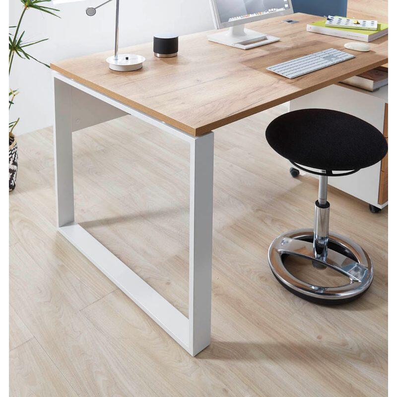 - Tischplatte in Navarra-Eiche-Nb., Metallkufen und Knieblende in Weiß