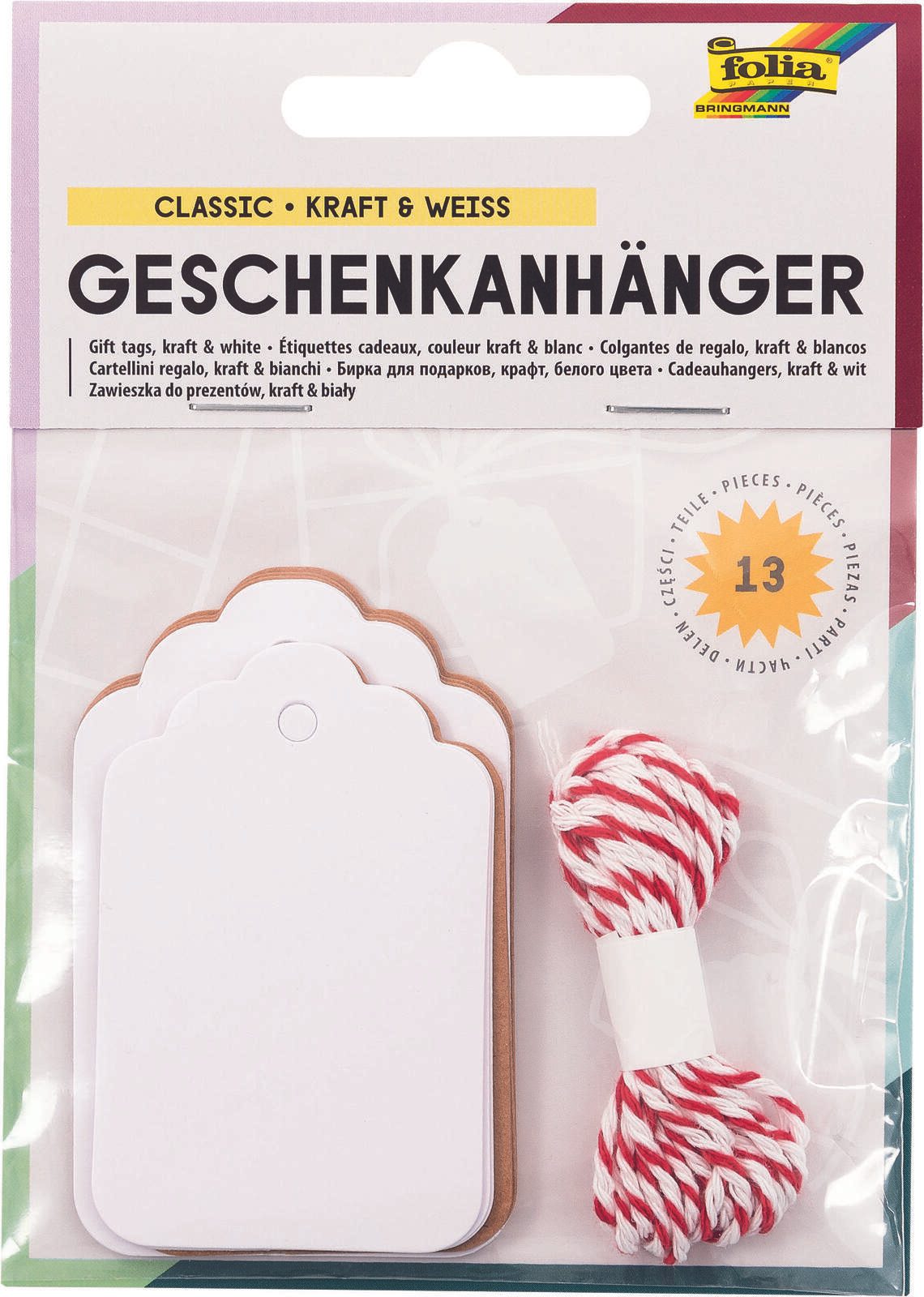 - Besonderheiten: Enthält 12 längliche Papier-Geschenkanhänger in natur und weiß, inklusive 2 m Schnur