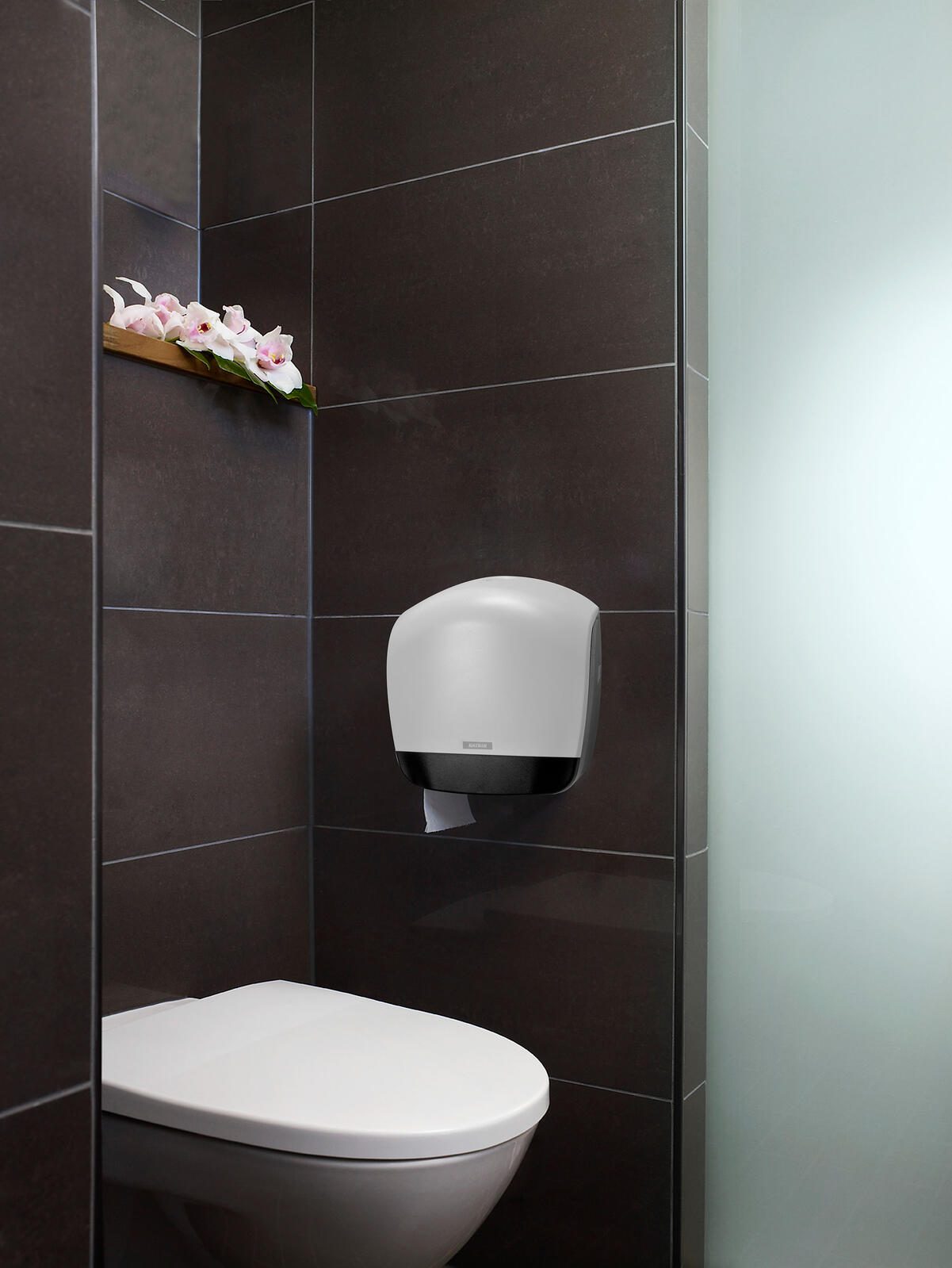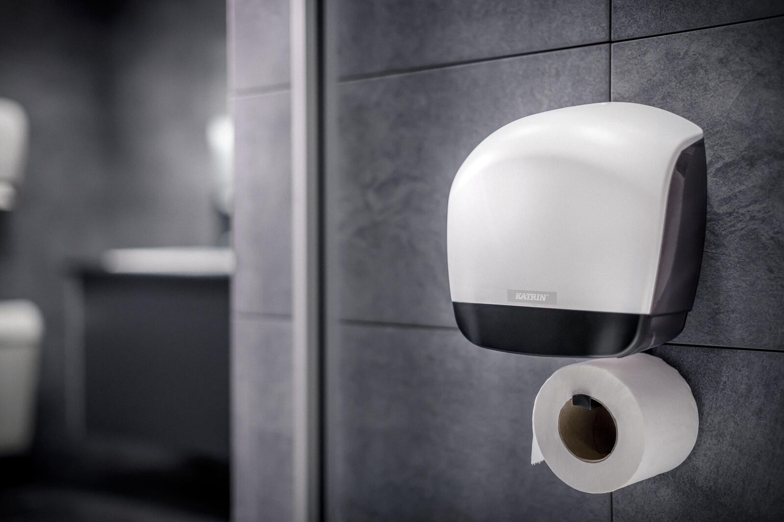 Der KATRIN Toilettenpapierspender in elegantem Schwarz und Weiß ist eine praktische und stilvolle Lösung für jedes Badezimmer oder öffentliche WC. Dieser Spender ist speziell für die Wandmontage konzipiert und bietet eine platzsparende Möglichkeit, Toilettenpapier zu präsentieren. Mit einem Fassungsvermögen für eine Jumborolle ist er ideal für stark frequentierte Bereiche, da er seltener nachgefüllt werden muss. Hergestellt aus hochwertigem Kunststoff, vereint der KATRIN Toilettenpapierspender Langlebigkeit mit ansprechendem Design. Die Außenmaße von 23,9 x 15,1 x 24,5 cm machen ihn kompakt genug, um in verschiedenen Umgebungen eingesetzt zu werden, ohne dabei an Funktionalität zu verlieren. Die abschließbare Funktion sorgt dafür, dass das Toilettenpapier sicher aufbewahrt wird und nicht unbefugt entnommen werden kann, was besonders in öffentlichen Einrichtungen von Vorteil ist. Die Außenabrollung ermöglicht eine einfache Handhabung und sorgt dafür, dass das Papier stets griffbereit ist. Dies trägt nicht nur zur Hygiene bei, sondern verbessert auch die Benutzerfreundlichkeit. Der KATRIN Toilettenpapierspender ist eine hervorragende Wahl für alle, die Wert auf Qualität und Funktionalität legen. Mit seinem modernen Design fügt er sich harmonisch in jede Umgebung ein und sorgt dafür, dass der Zugang zu Toilettenpapier stets komfortabel und unkompliziert ist.Technische Daten