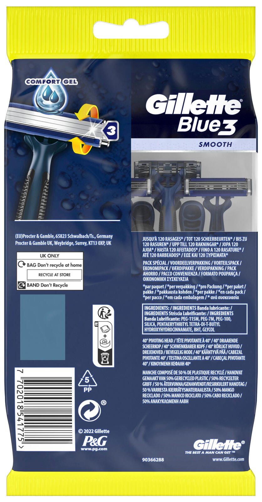 - Der Gillette Einwegrasierer Blue 3 Smooth hat 3 chrombeschichtete Hautsensor-Klingen und einen 40°-Schwenkkopf, der sich den Gesichtskonturen anpasst.