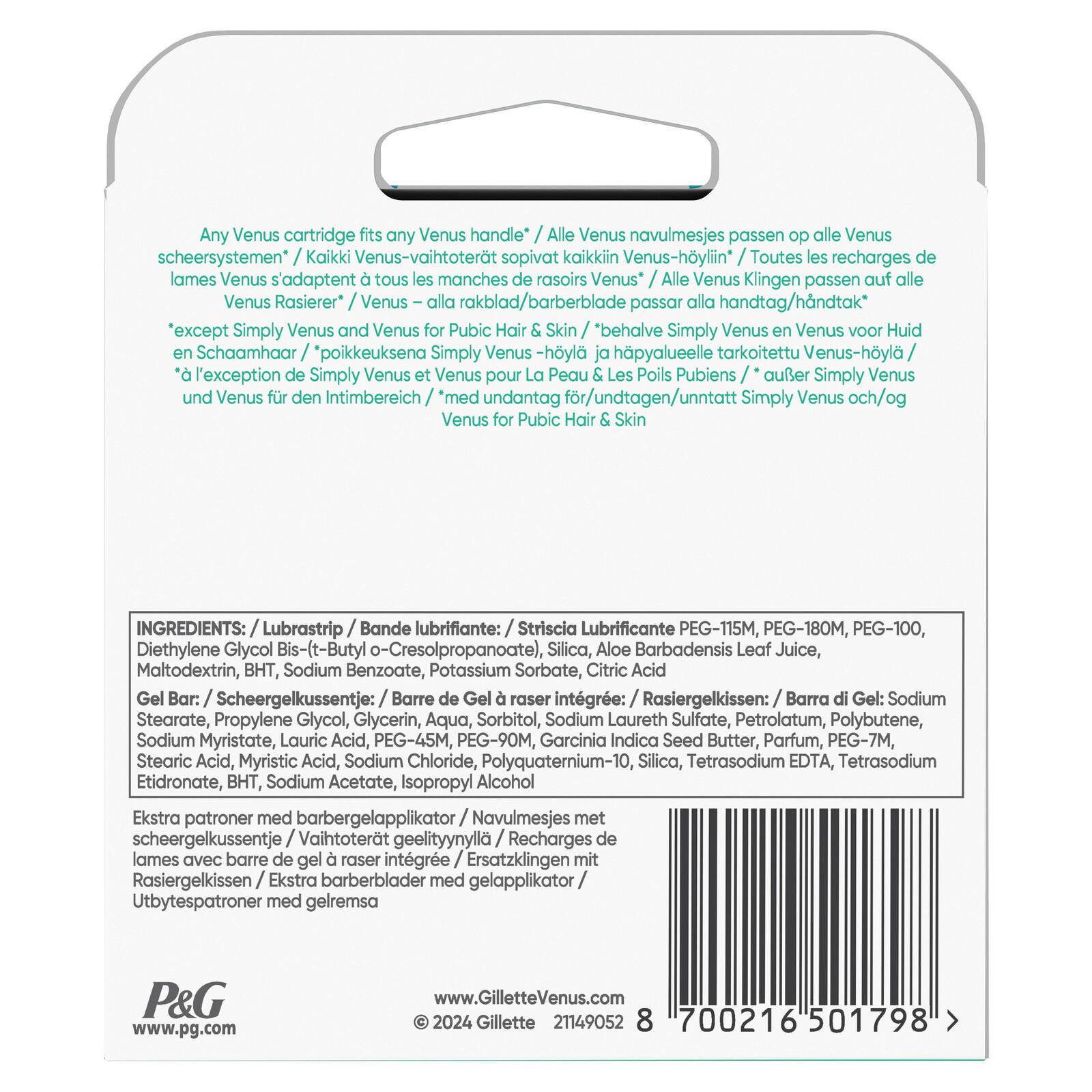 Die Rasierklingen sind kompatibel mit nahezu allen Venus Handstücken, mit Ausnahme der Simply Venus und der Venus für den Intimbereich, was eine flexible und einfache Anwendung ermöglicht. Die Packung enthält sechs hochwertige Klingen, die für eine zuverlässige und komfortable Rasur sorgen.