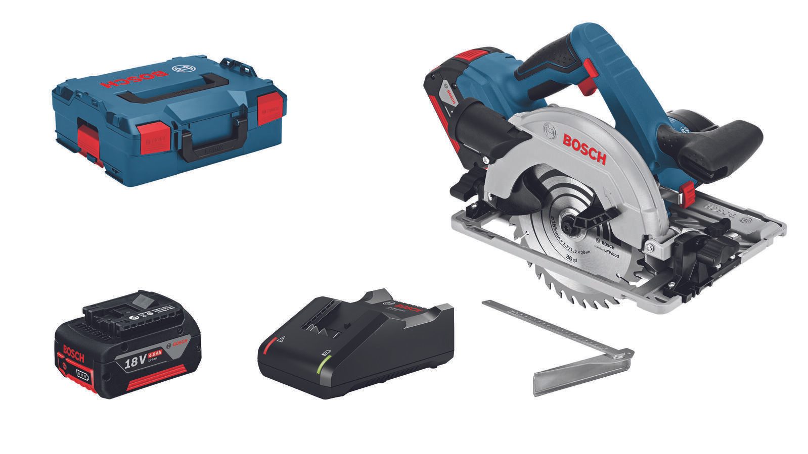 - Lieferung inkl.: 2x Akku GBA 18V 4,0 Ah, Schnellladegerät GAL 18V-40, L-BOXX 238, 1x Kreissägeblatt Standard for Wood 165 x 1,7/1,2 x 20 mm, 36