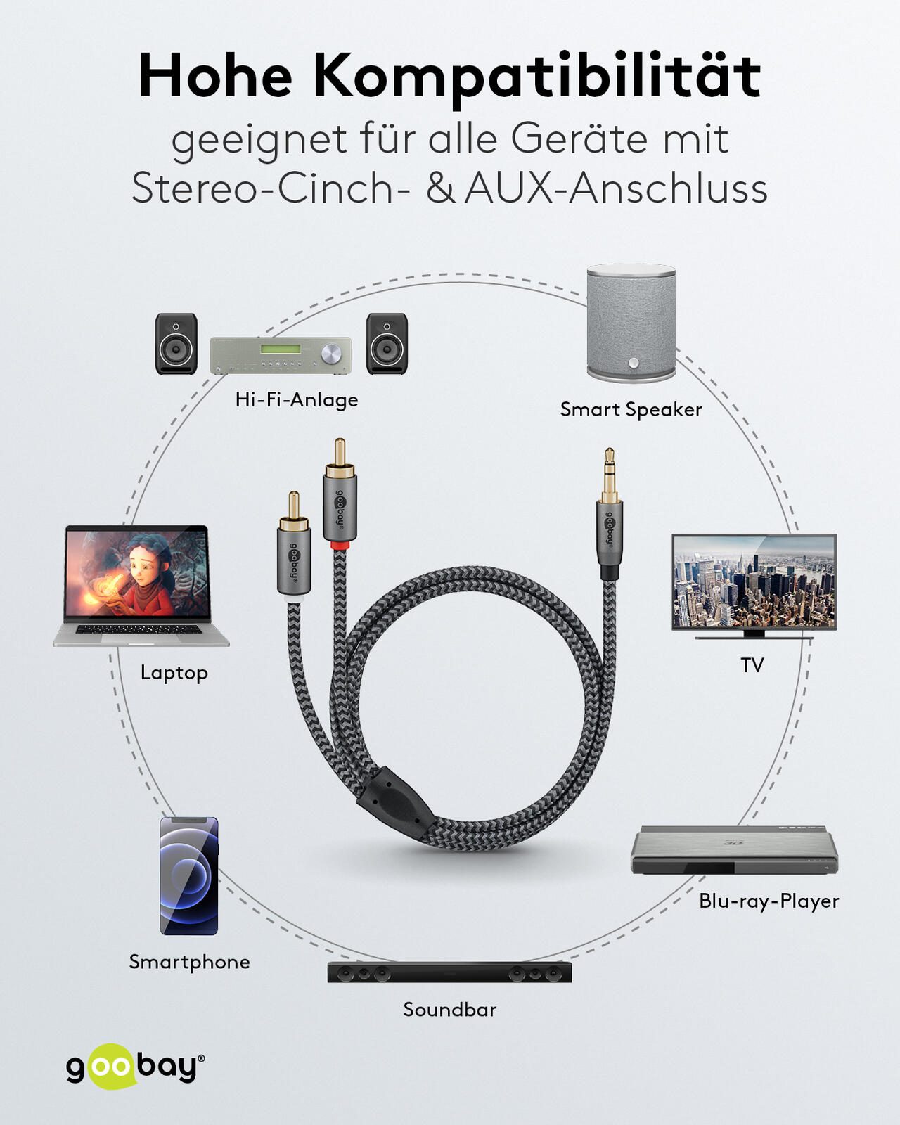 goobay 3,5 mm Klinke/Cinch Kabel 5,0 m silber, schwarz, 1 St.