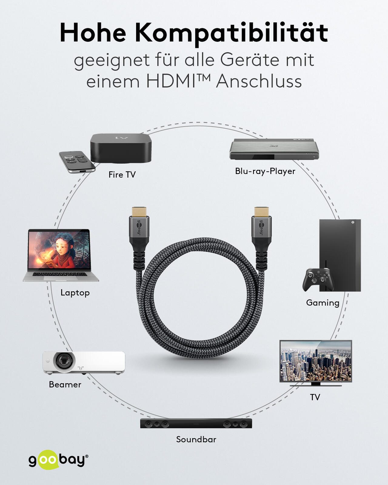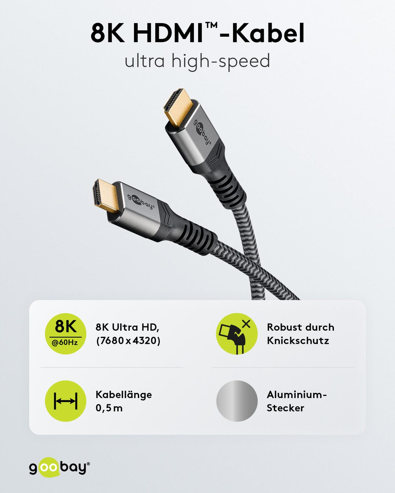 goobay HDMI 2.1 HDMI-Kabel 0,5 m grau, schwarz, 1 St.