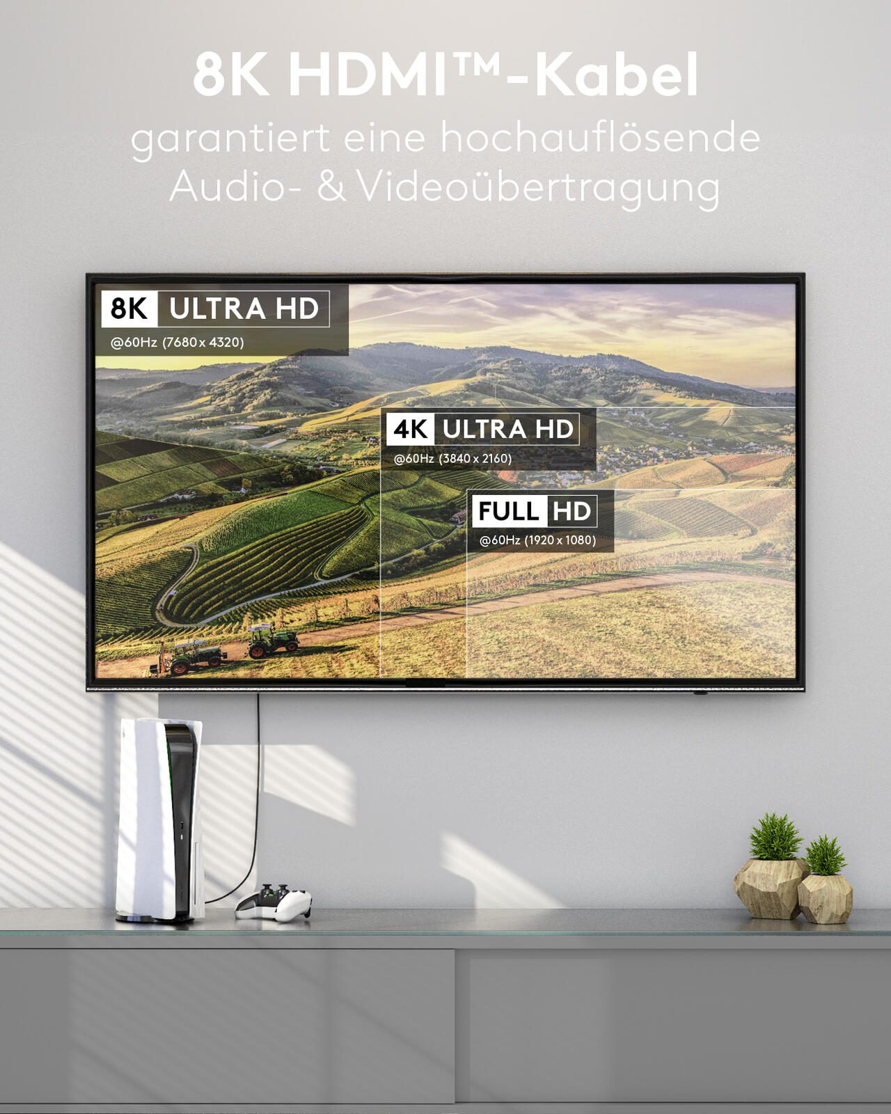 Das Kabel wurde speziell für die Übertragung von hochauflösenden Bild- und Tonsignalen entwickelt und entspricht dem HDMI 2.1 Standard. Dies gewährleistet eine stabile und schnelle Datenübertragung, die für moderne Multimedia-Anwendungen geeignet ist. Durch die kompakten Maße eignet sich das Kabel besonders für den Einsatz in beengten Räumen oder bei kurzen Verbindungsstrecken zwischen Geräten.