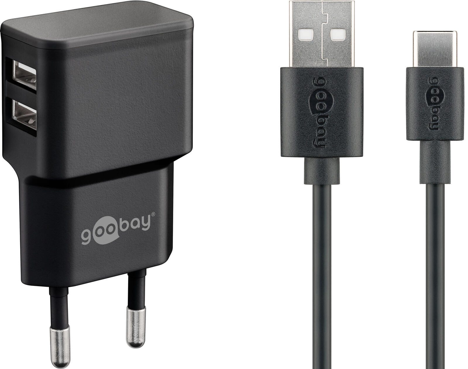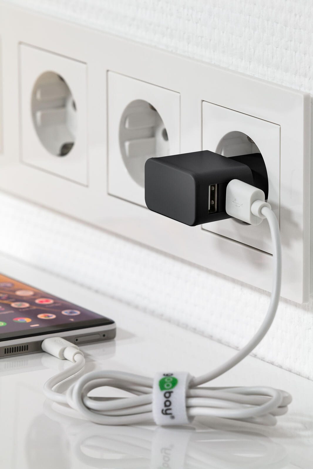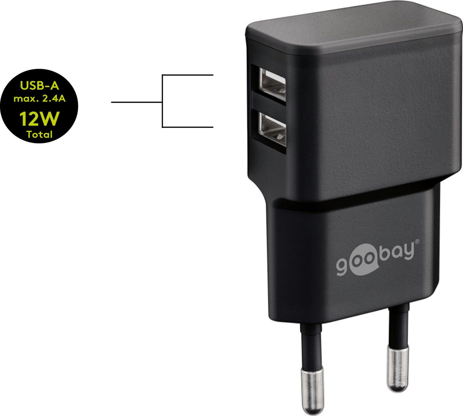 goobay Ladekabel mit Adapter schwarz, Kabellänge: 1,0 m, 12 Watt