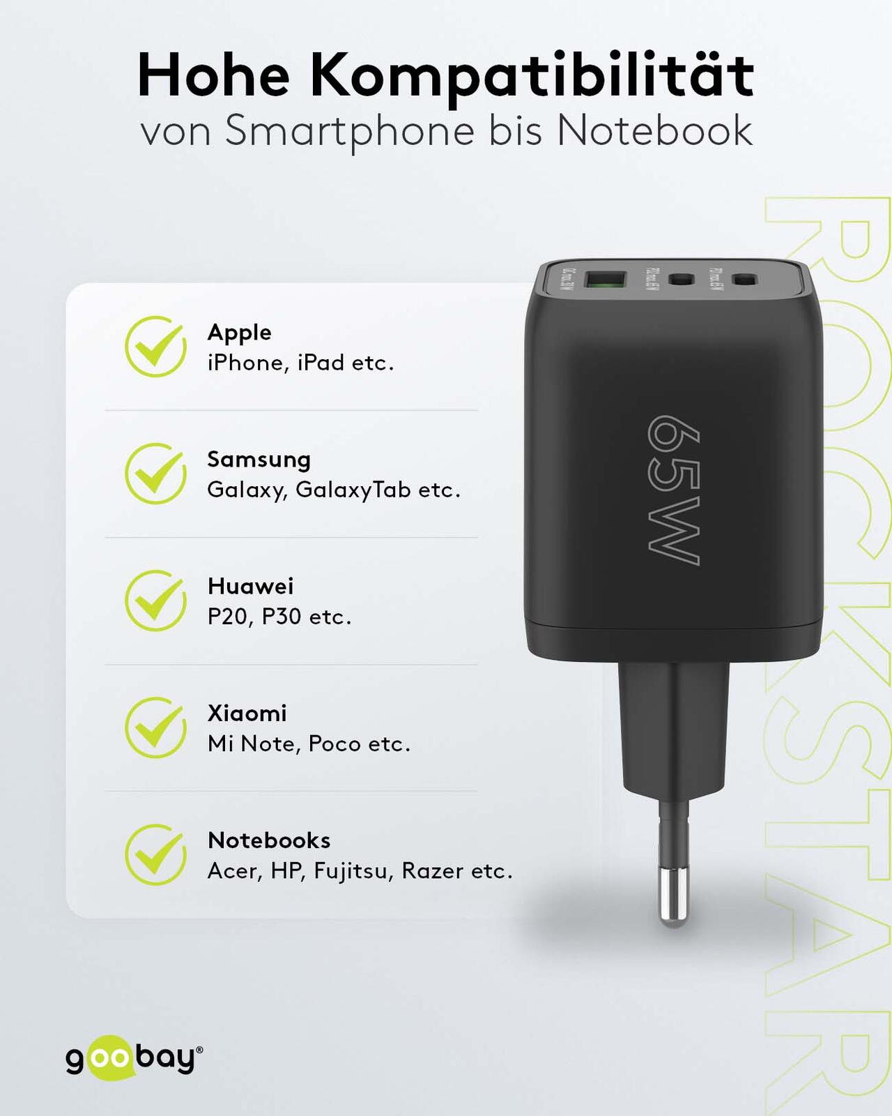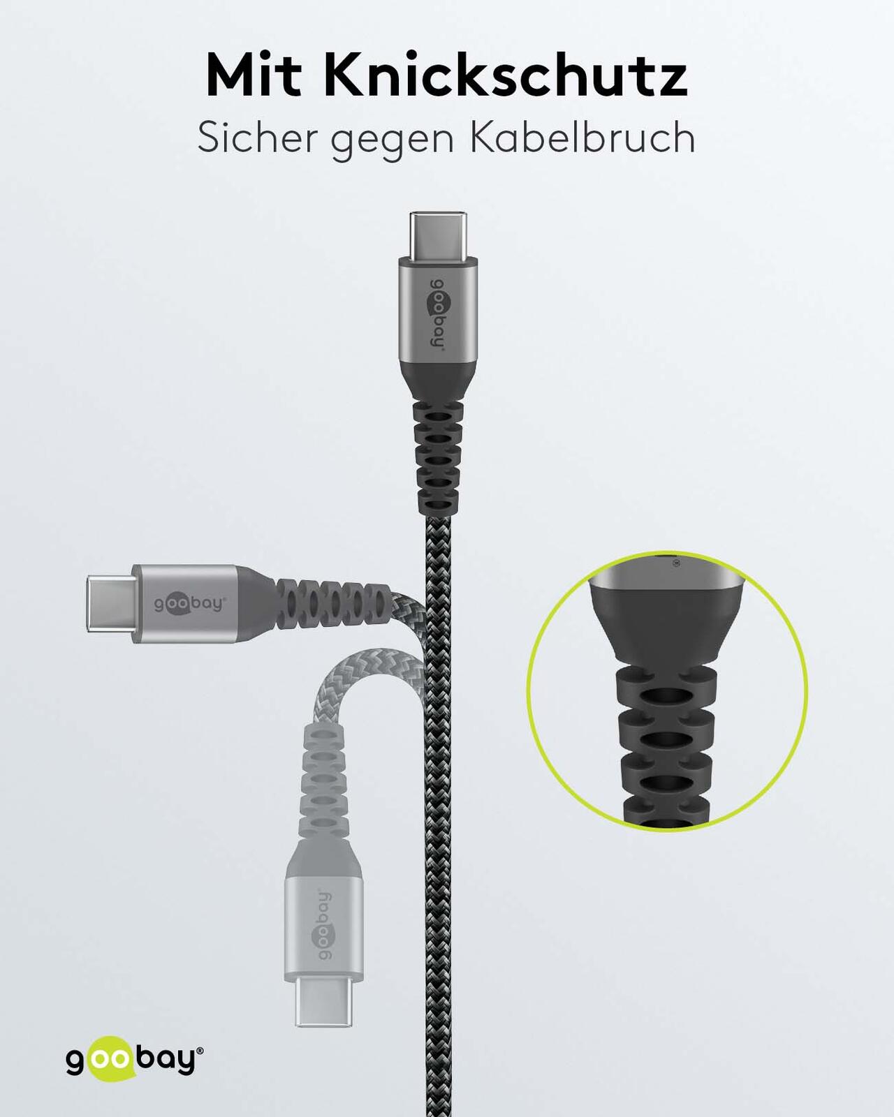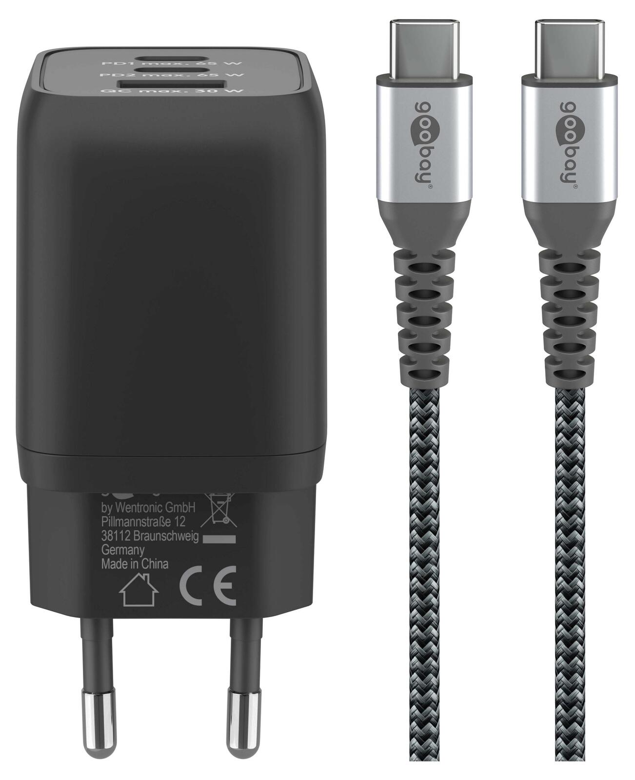 goobay Ladekabel mit Adapter schwarz, Kabellänge: 1,0 m, 65 Watt