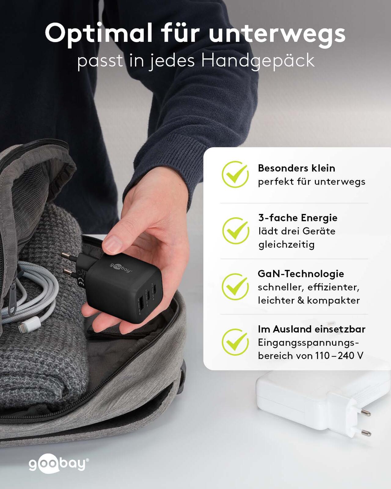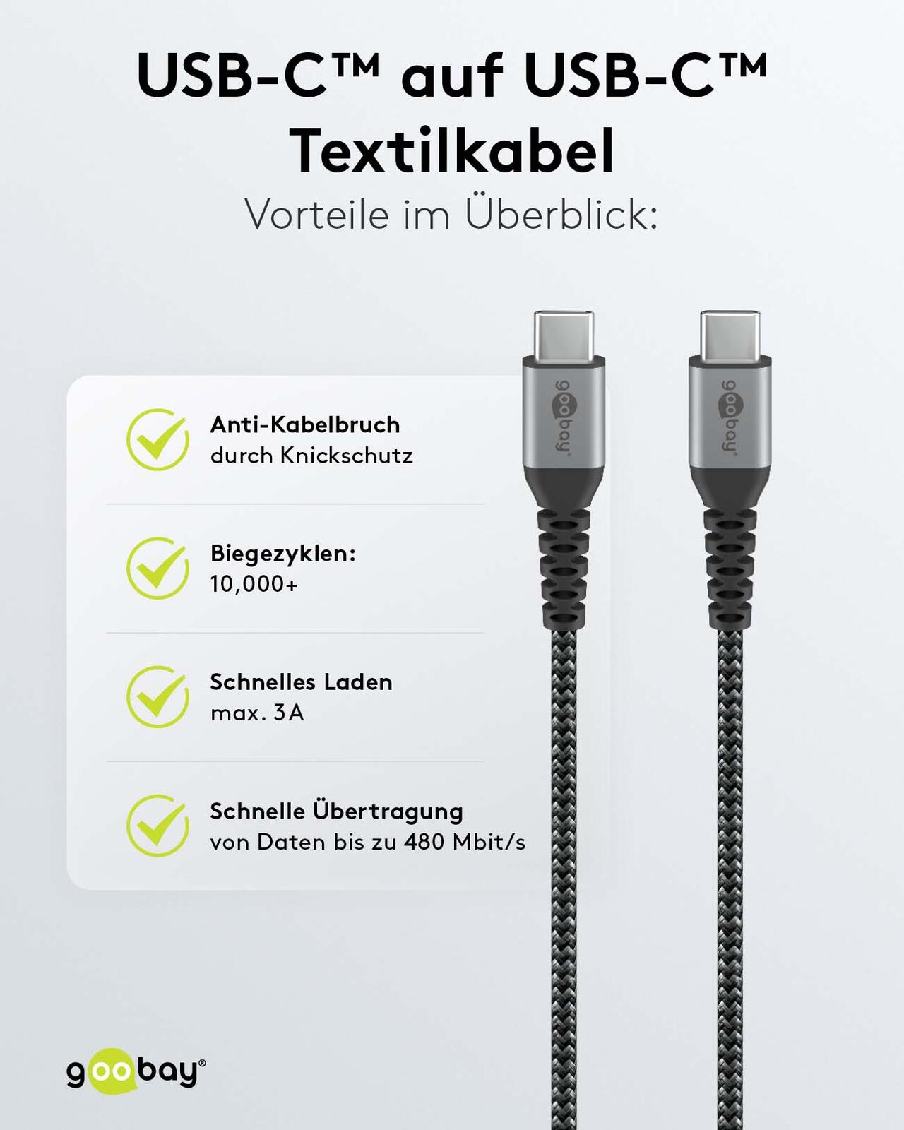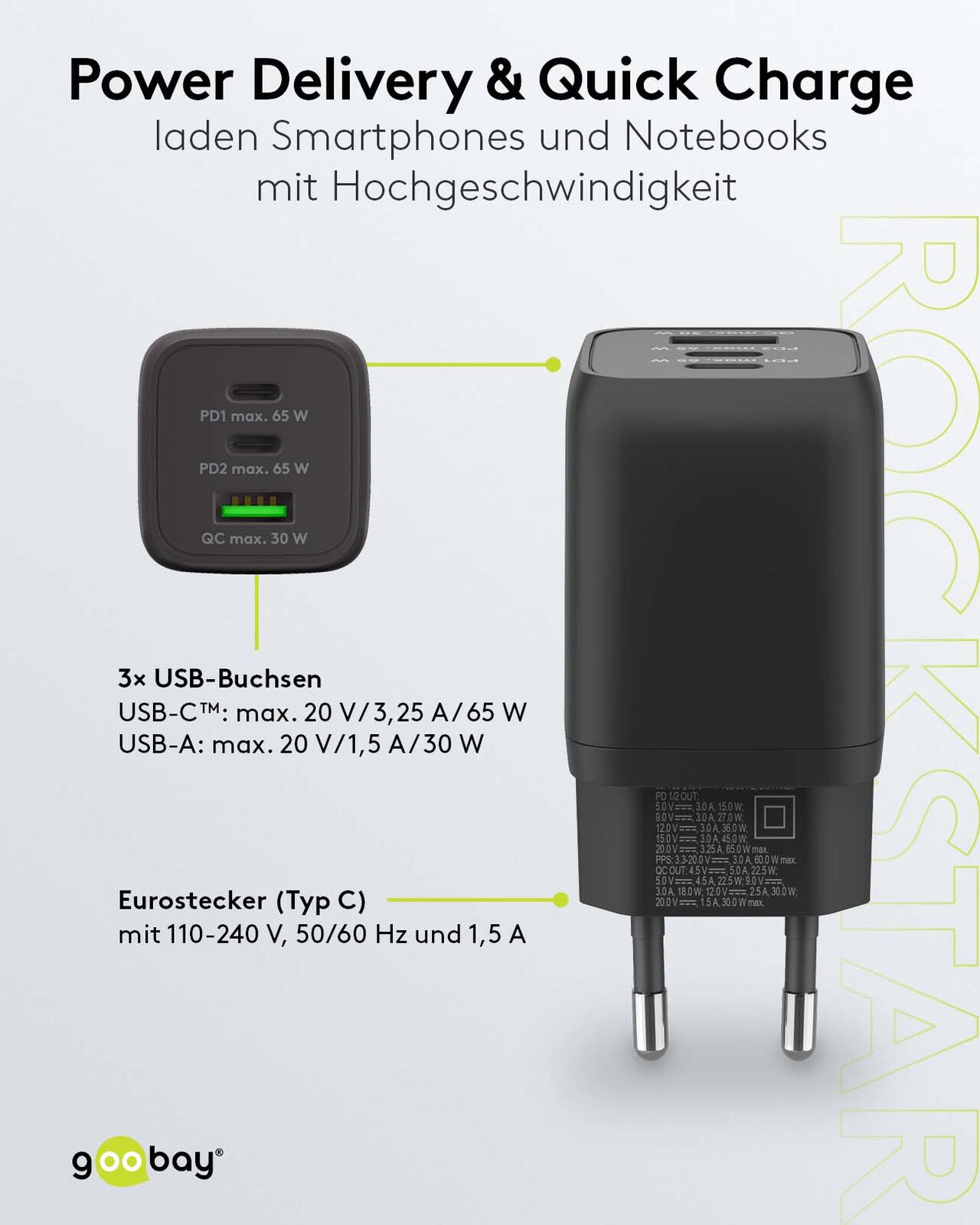 goobay Ladekabel mit Adapter schwarz, Kabellänge: 1,0 m, 65 Watt