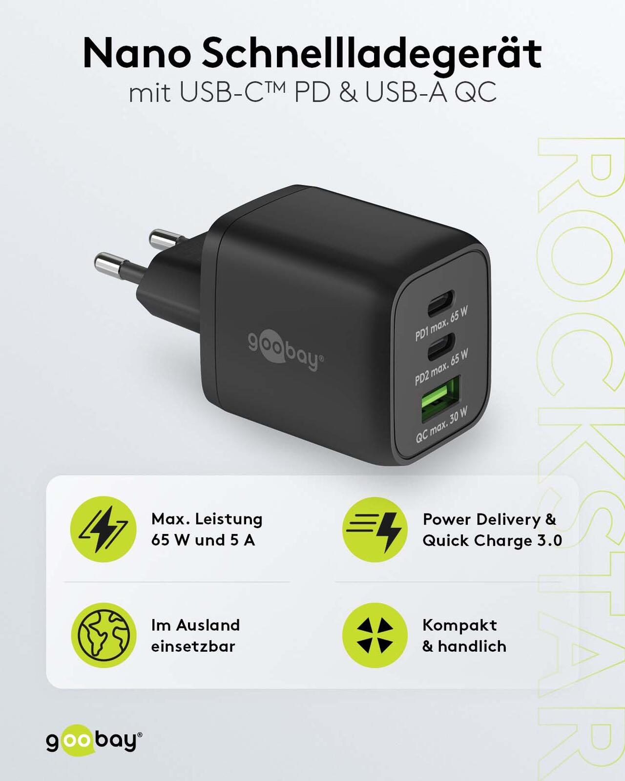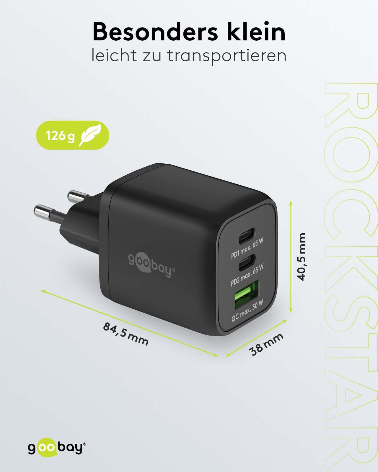- Schnittstellen: USB A, 2 x USB C, Steckdose