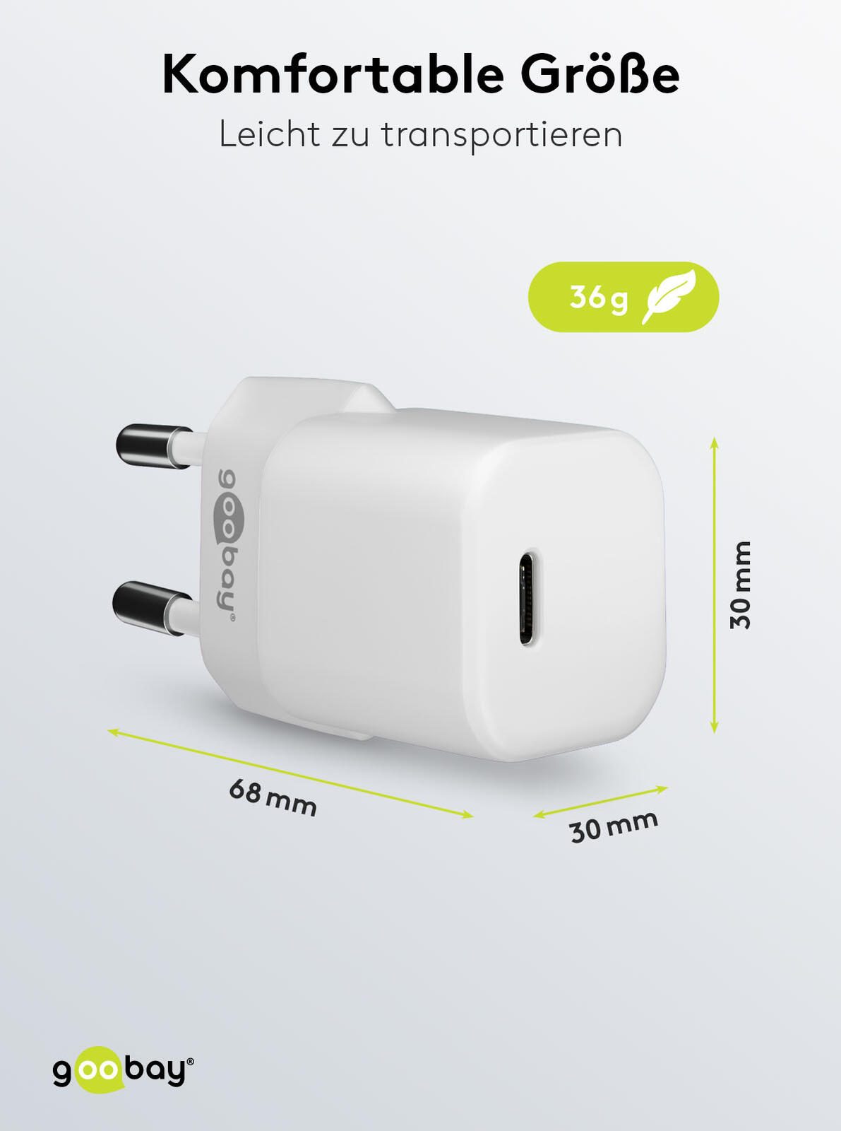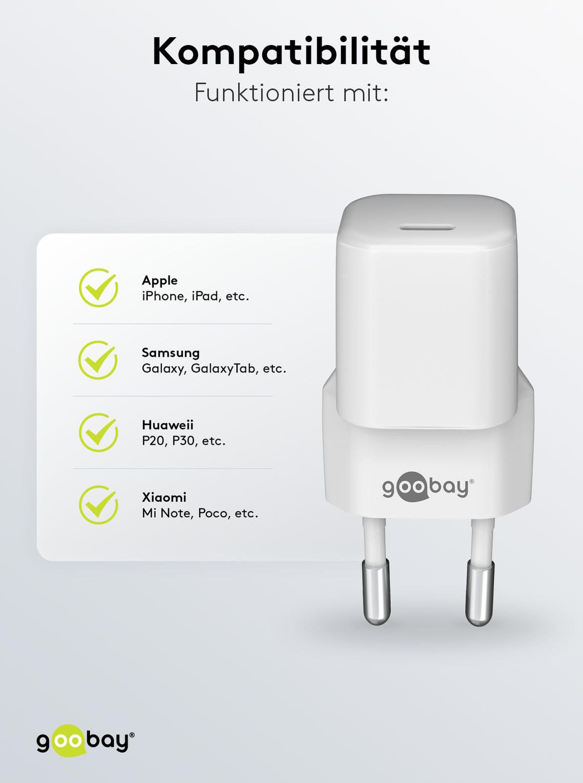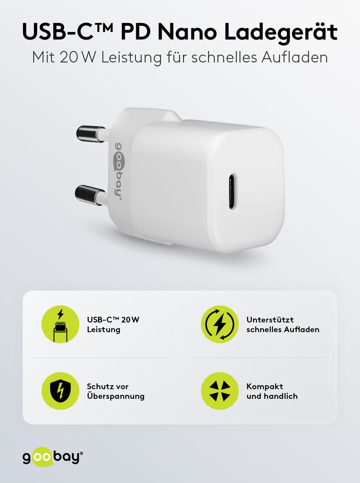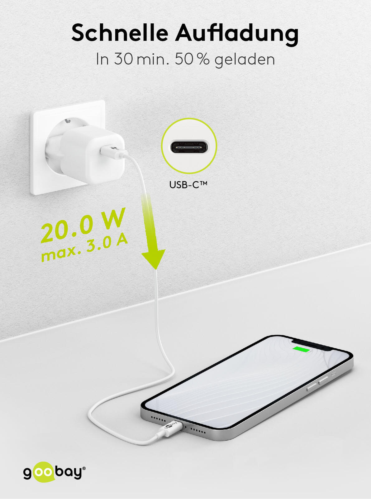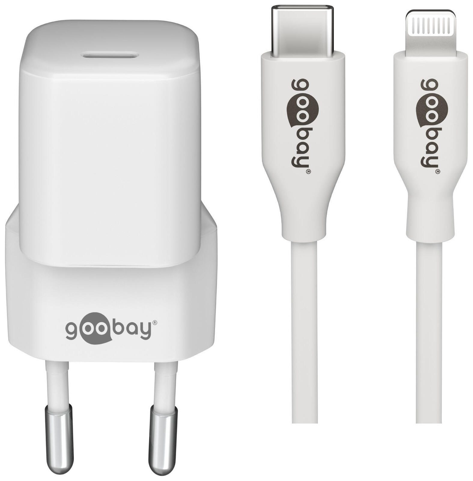 goobay Ladekabel mit Adapter weiß, Kabellänge: 1,0 m, 20 Watt