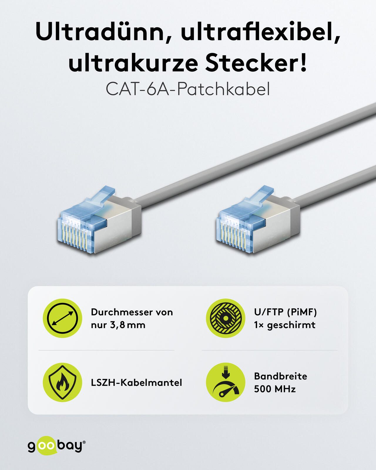 Das goobay LAN-Kabel CAT6A mit einer Länge von 0,25 Metern überzeugt durch seine kompakte Bauweise und hohe Leistungsfähigkeit. Das superdünne Kabel ist ideal für anspruchsvolle Netzwerkverbindungen und unterstützt sowohl PoE (Power over Ethernet) als auch PoE+, wodurch es nicht nur Daten, sondern auch Strom zuverlässig überträgt. Dies macht es besonders geeignet für moderne Netzwerkgeräte, die über das Netzwerkkabel mit Strom versorgt werden sollen.