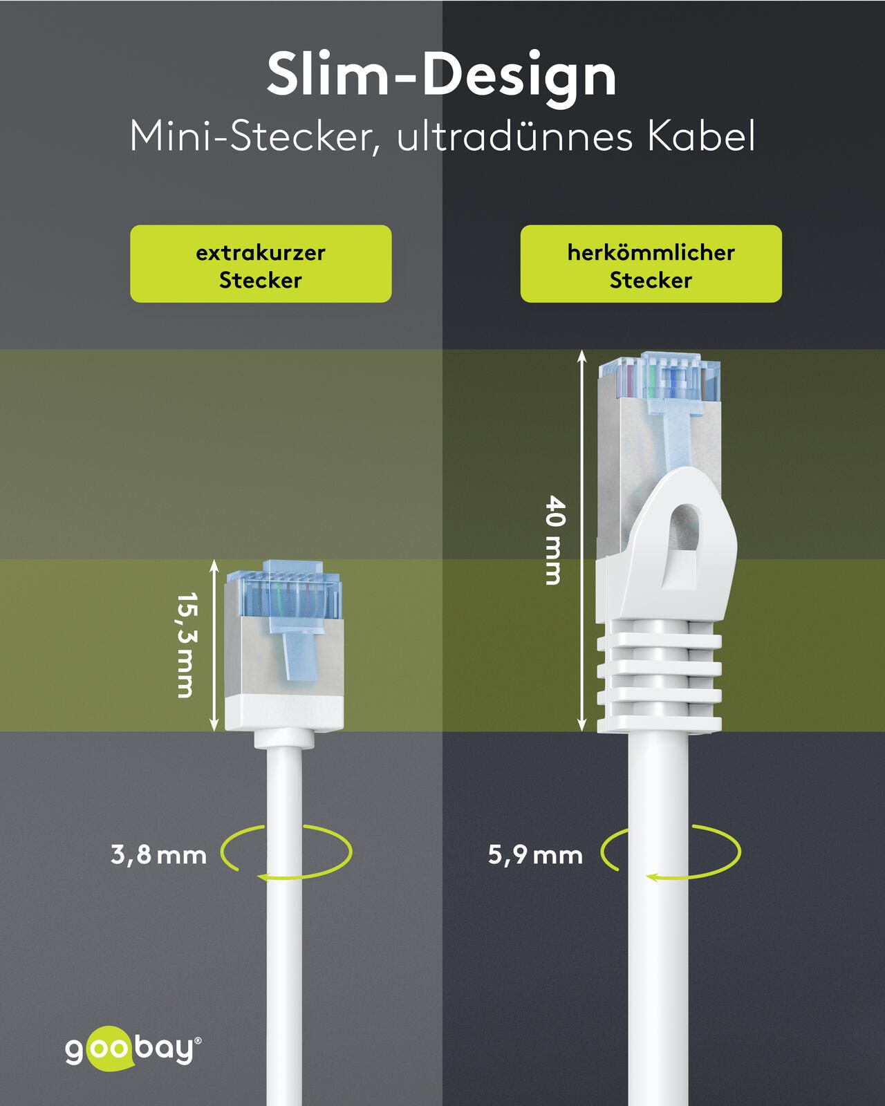 Die robuste Konstruktion sorgt für eine lange Lebensdauer und einen stabilen Betrieb, während die kompakte Bauweise den Einsatz in vielfältigen Szenarien ermöglicht – sei es im privaten Heimnetzwerk, im Büro oder bei professionellen Anwendungen. Als Produkt der Marke goobay steht dieses LAN-Kabel für Qualität und eine zuverlässige Verbindung, die den hohen Anforderungen moderner Netzwerktechnik gerecht wird.
