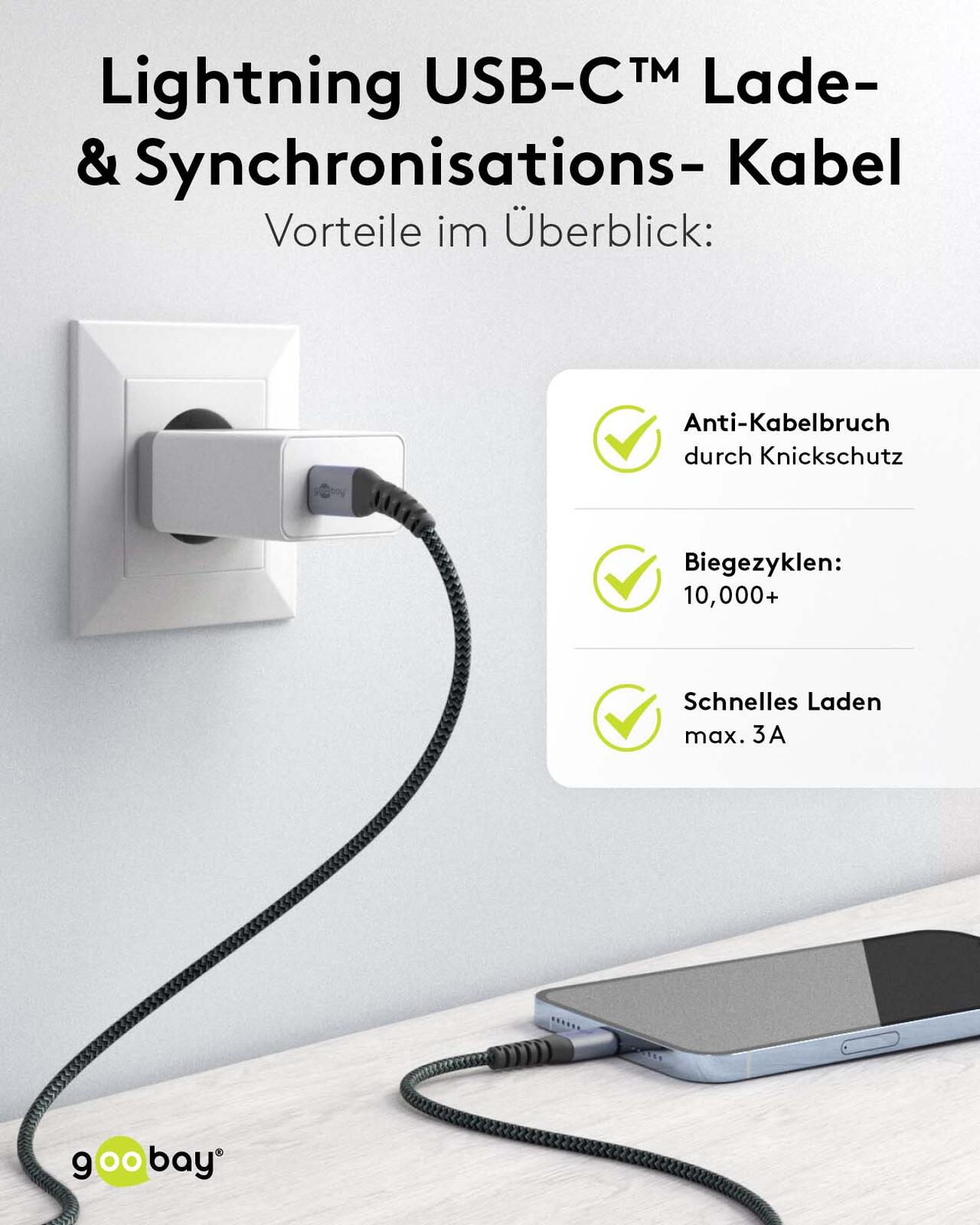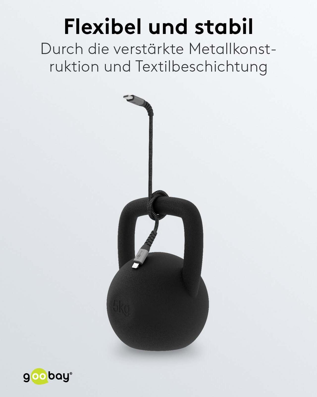 goobay Lightning/USB C Kabel 1,0 m grau, schwarz, 1 St.