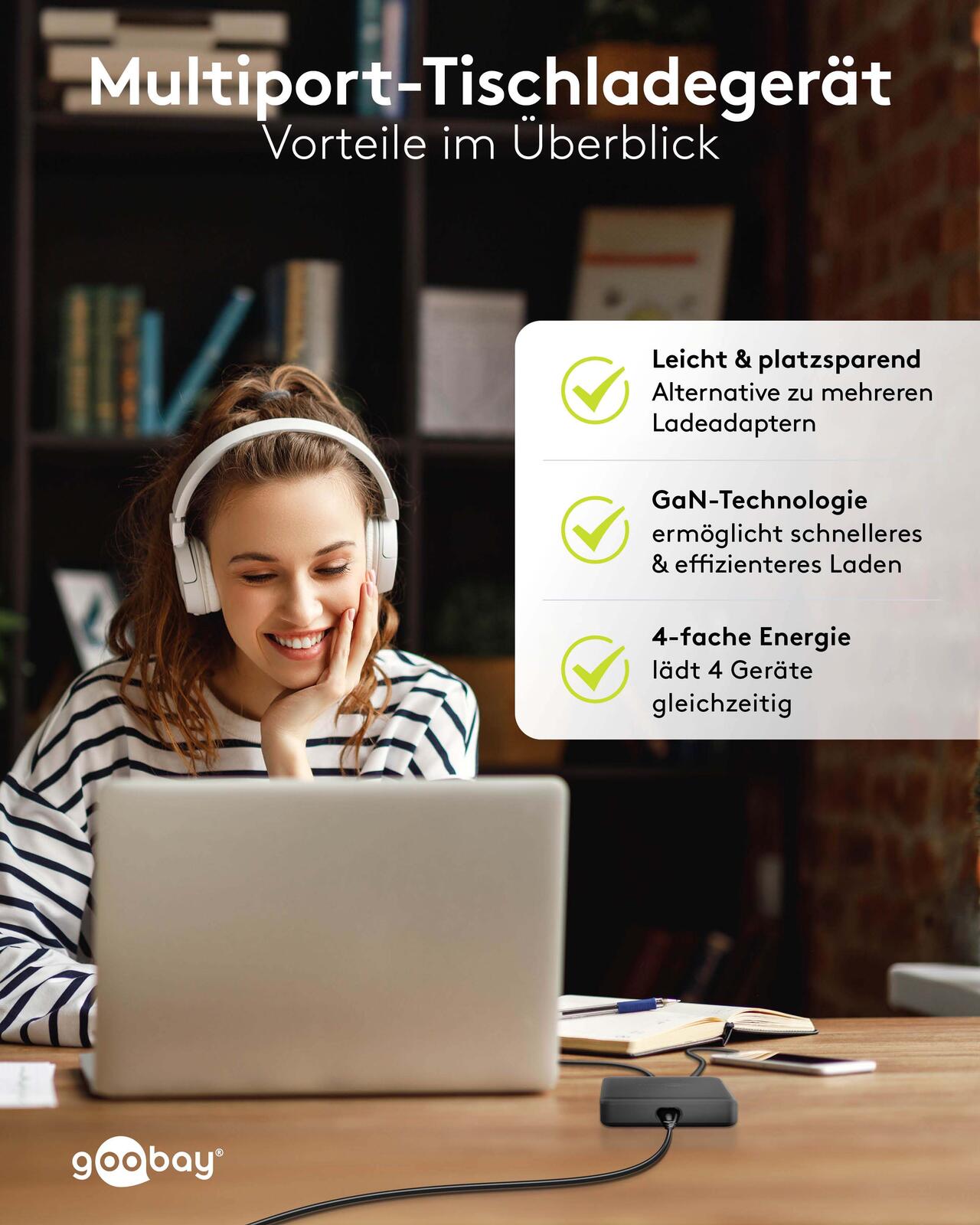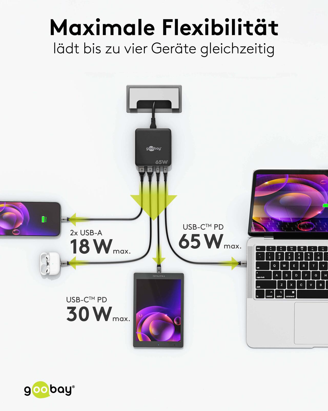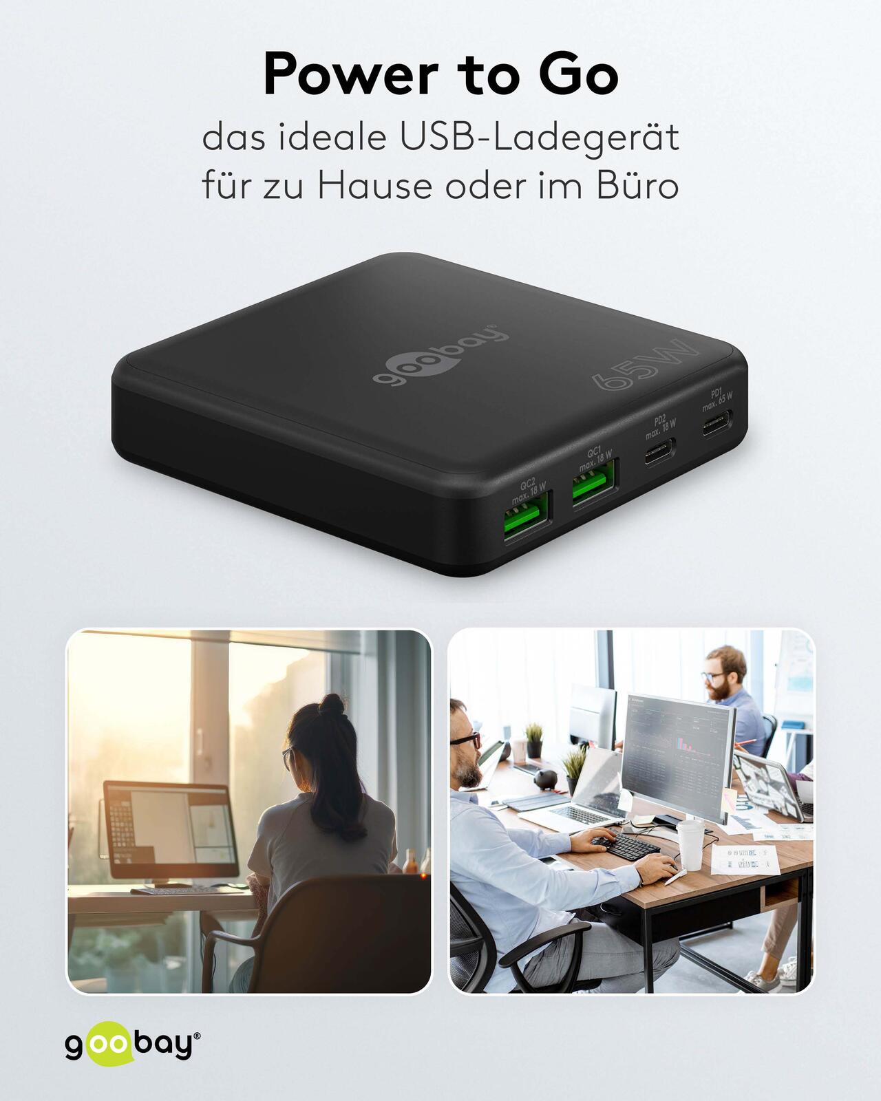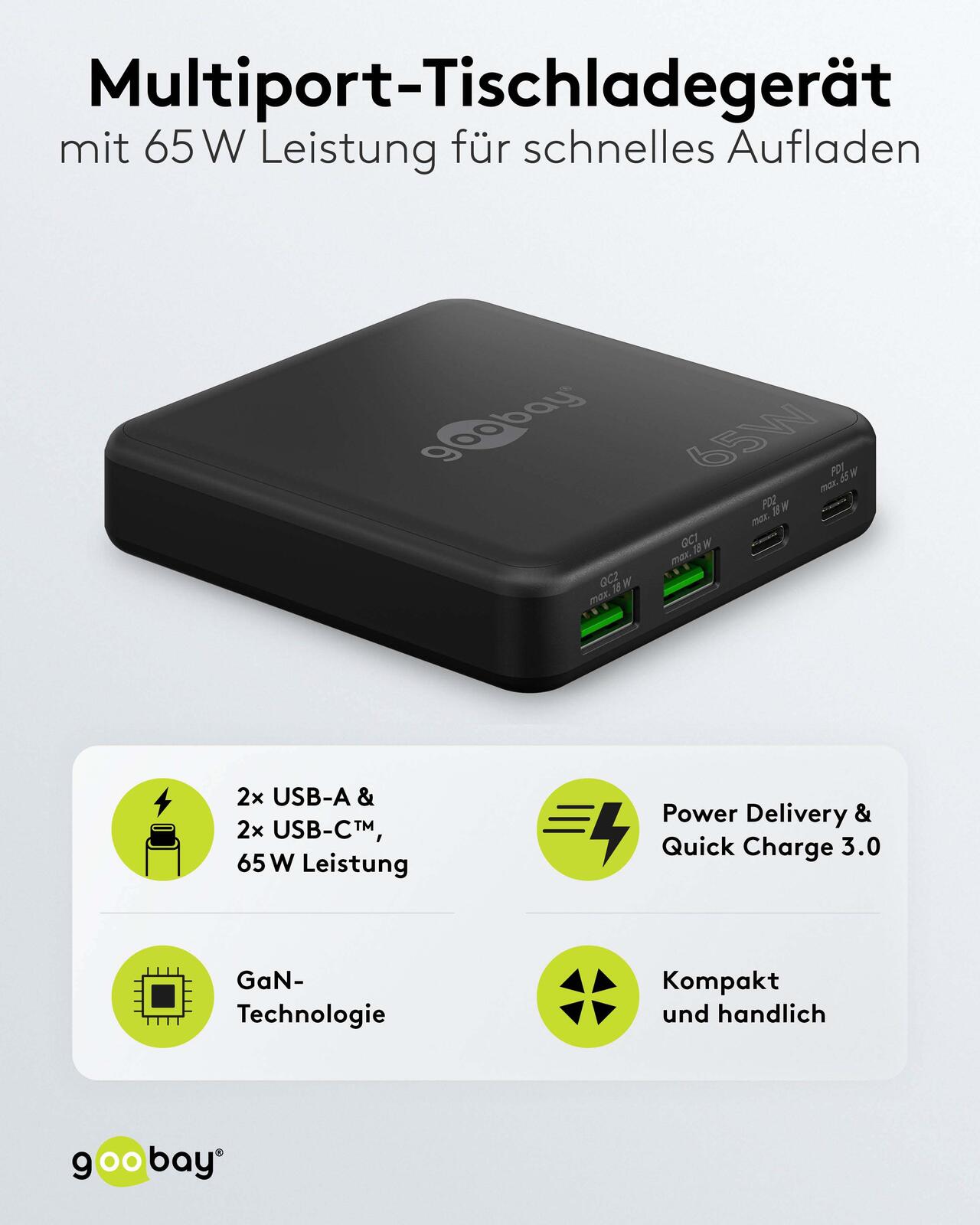 goobay Multiport-Tischladegerät GaN 65W schwarz