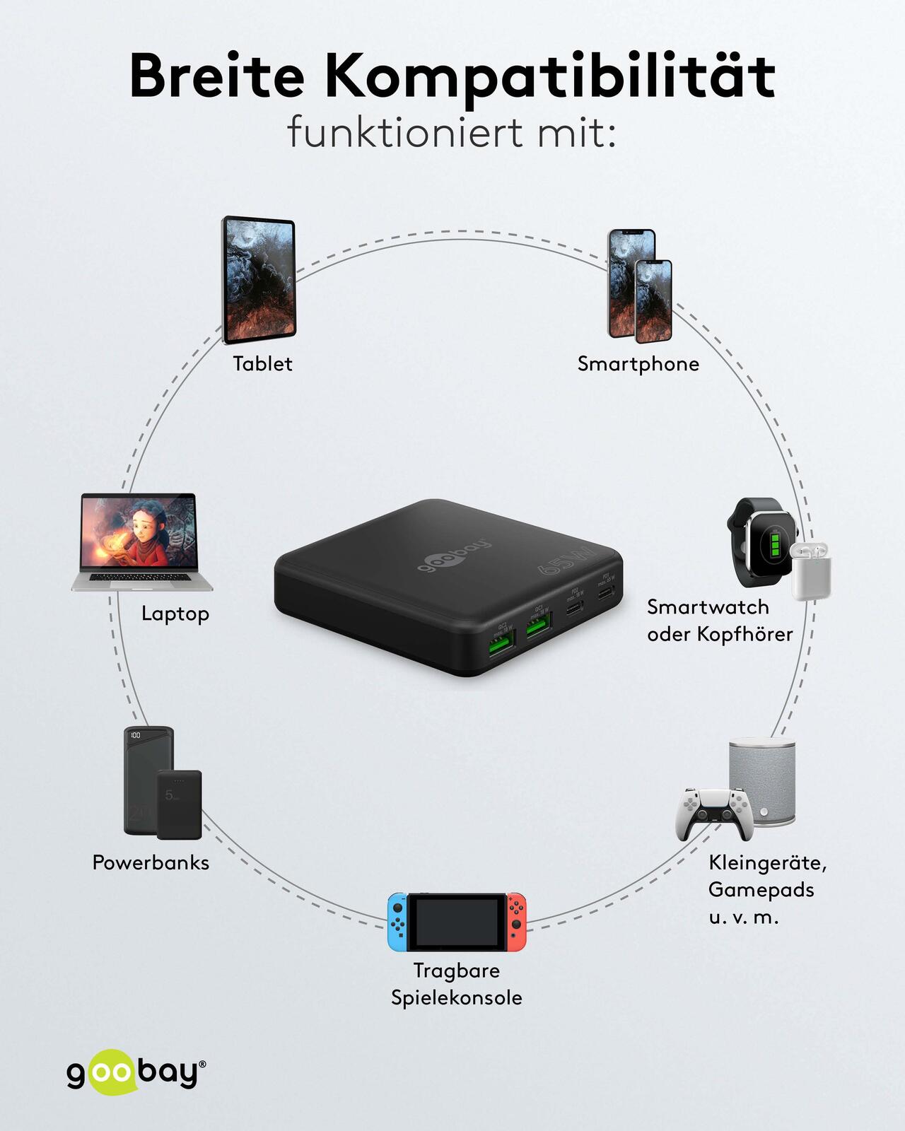 - geeignet für Smartphones, Laptops, Tablets und tragbaren Spielekonsolen